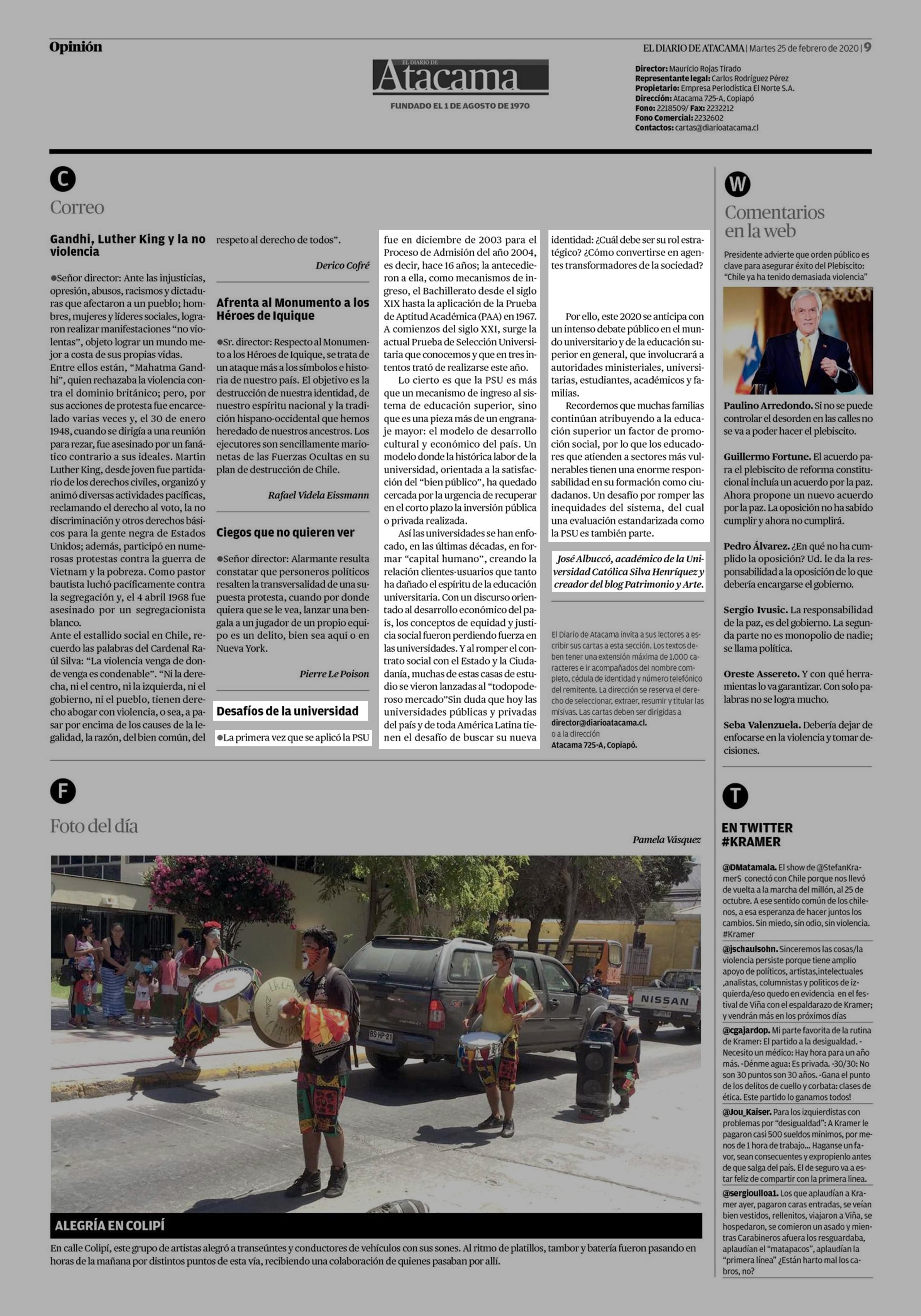| Fecha: | 25-02-2020 | Sector: | Opinión - Cartas | Región: | Región de Atacama |