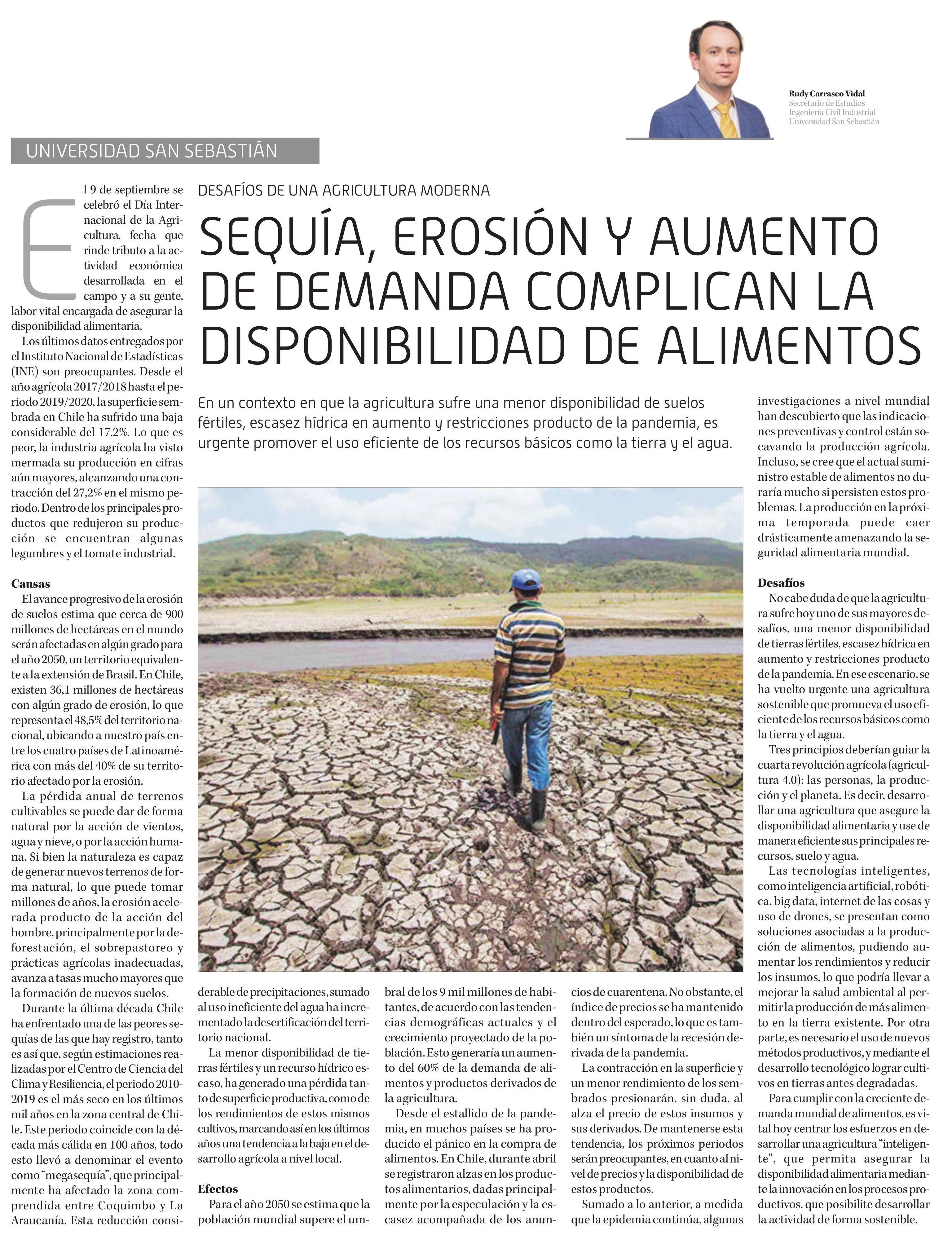 SEQUÍA, EROSIÓN Y AUMENTO DE DEMANDA COMPLICAN LA DISPONIBILIDAD DE ALIMENTOS 22-09-2020 Diario Concepción |