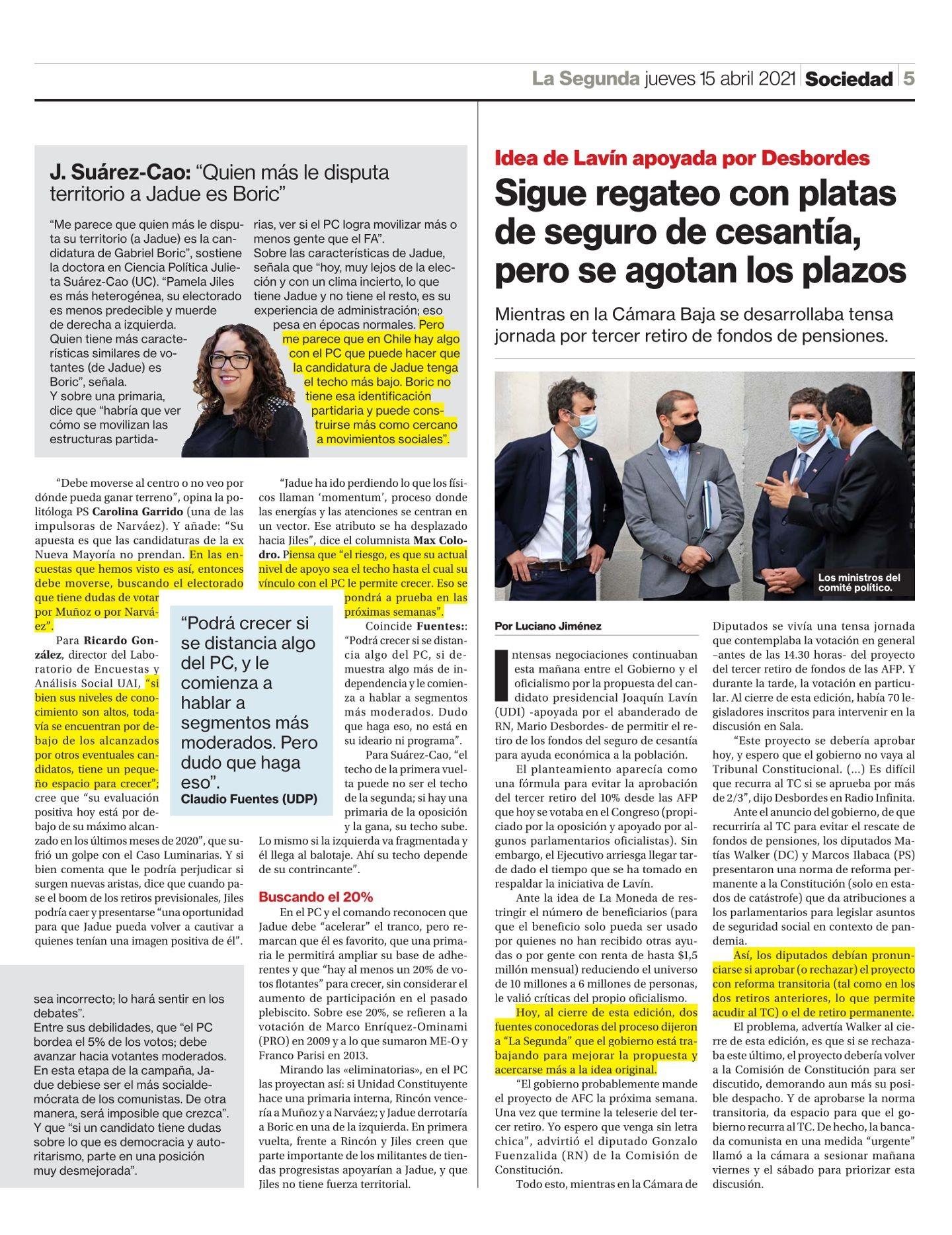 Daniel Jadue puede crecer, pero se acerca a su techo 15-04-2021 La Segunda |