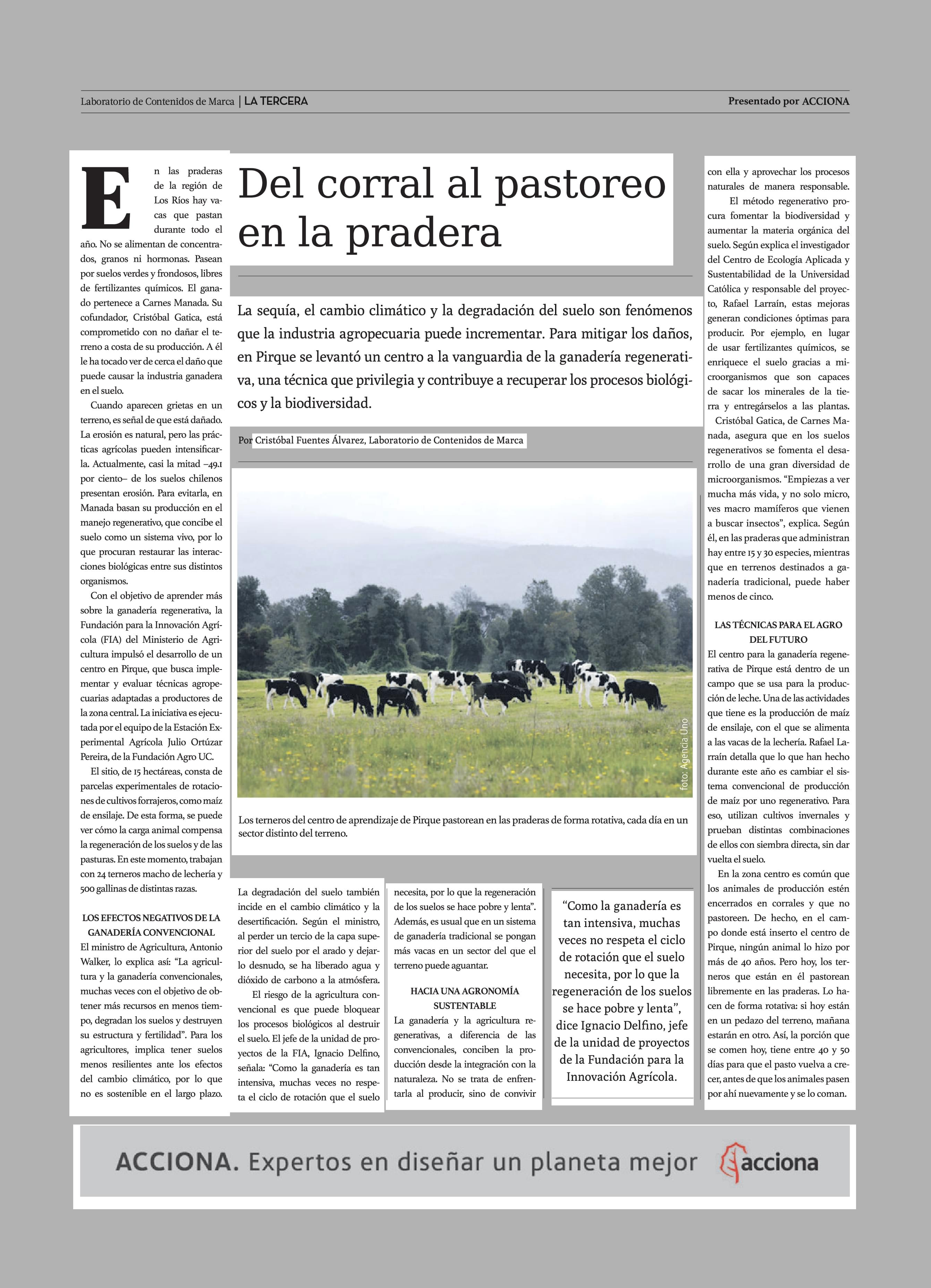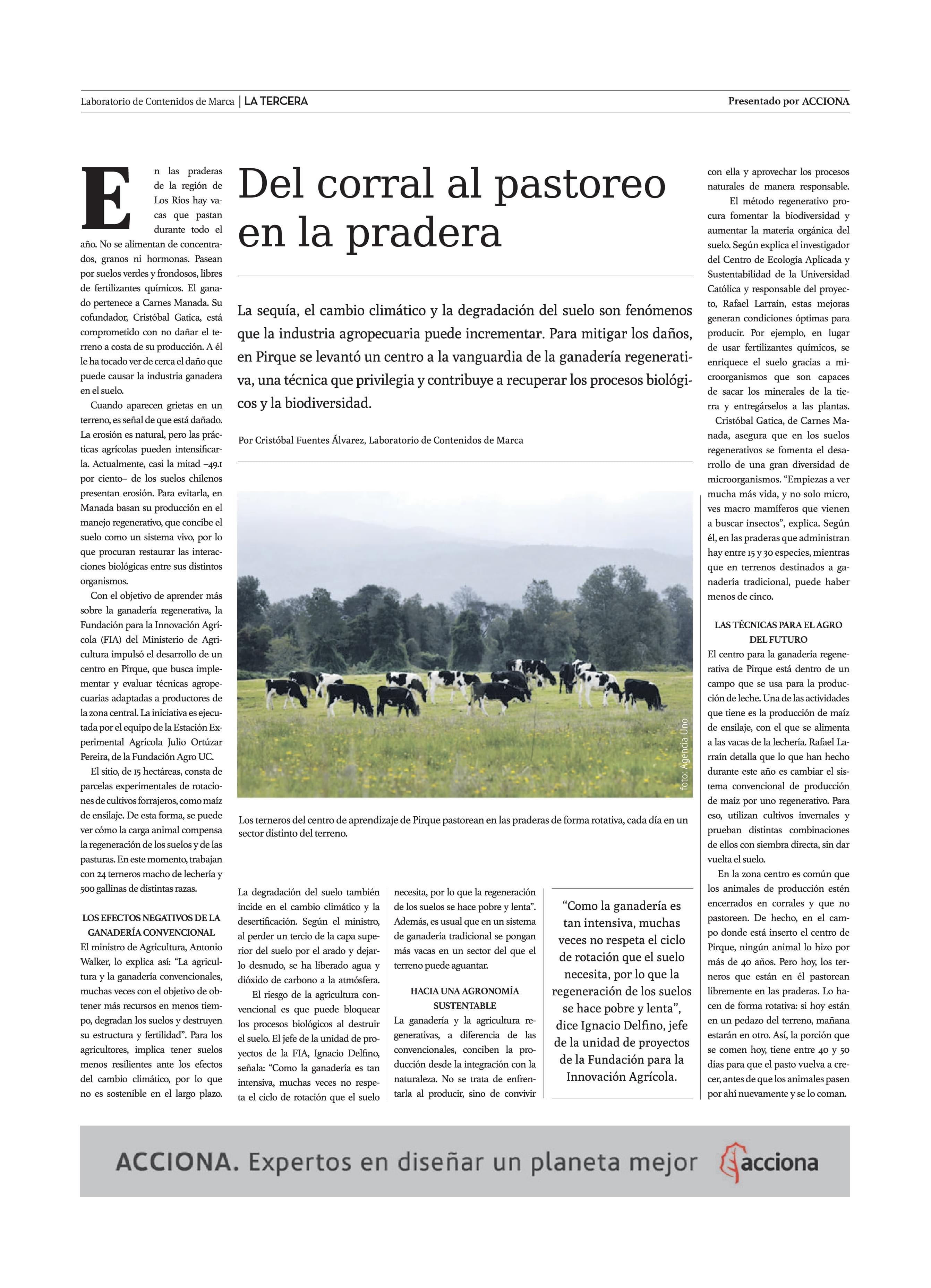 Del corral al pastoreo en la pradera 08-11-2020 La Tercera |