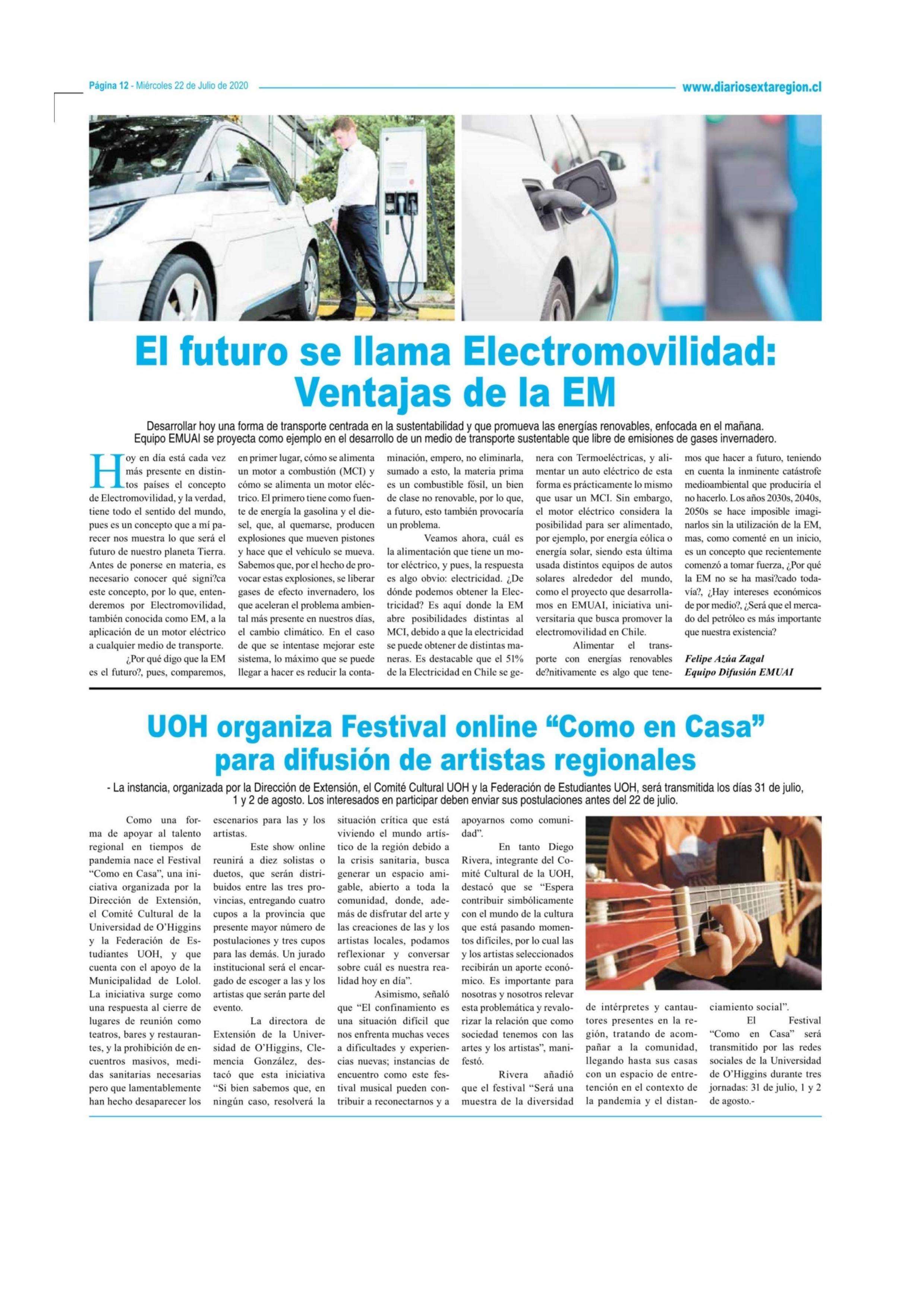 El futuro se llama Electromovilidad: Ventajas de la EM 22-07-2020 Diario VI Región |