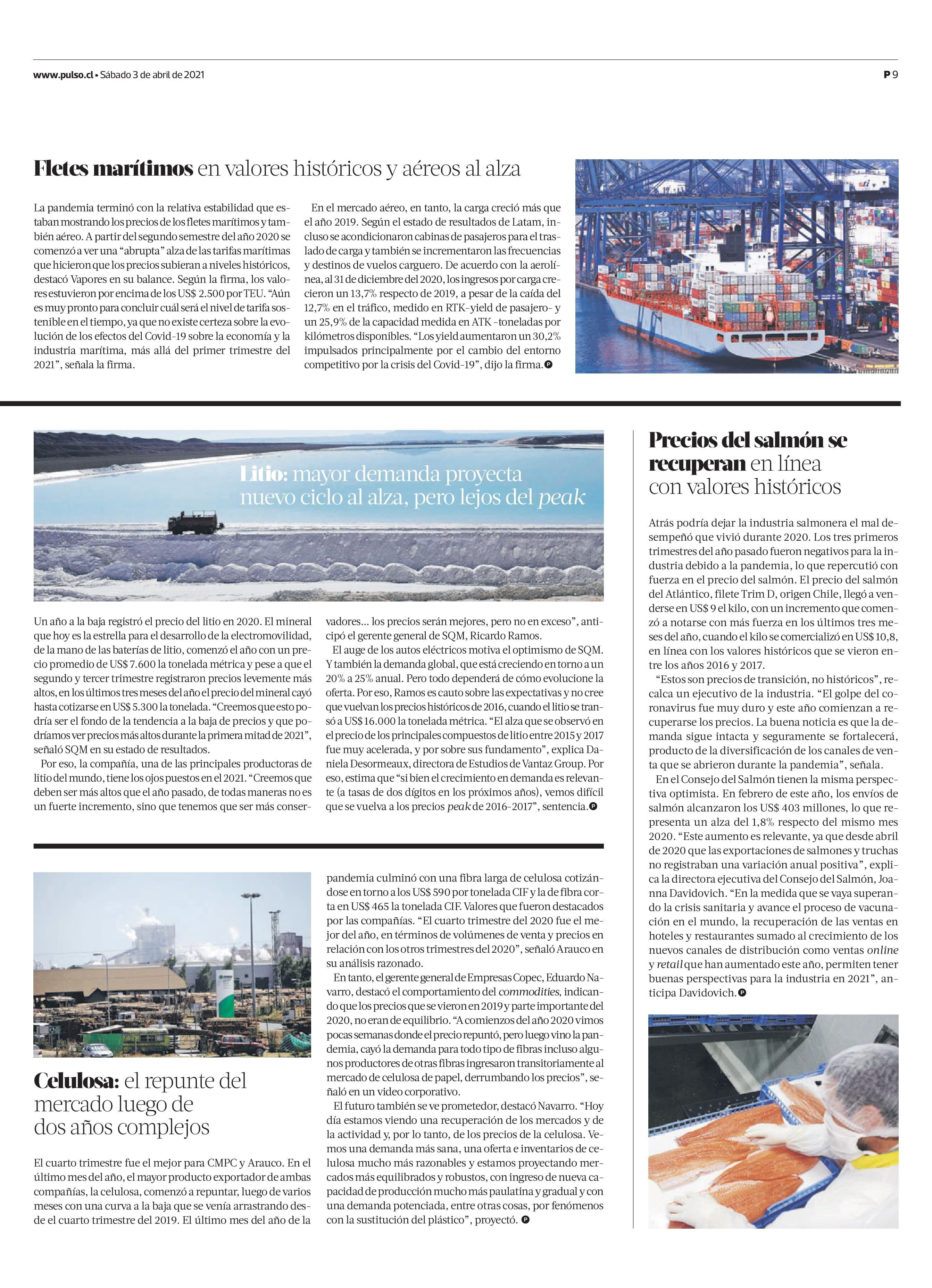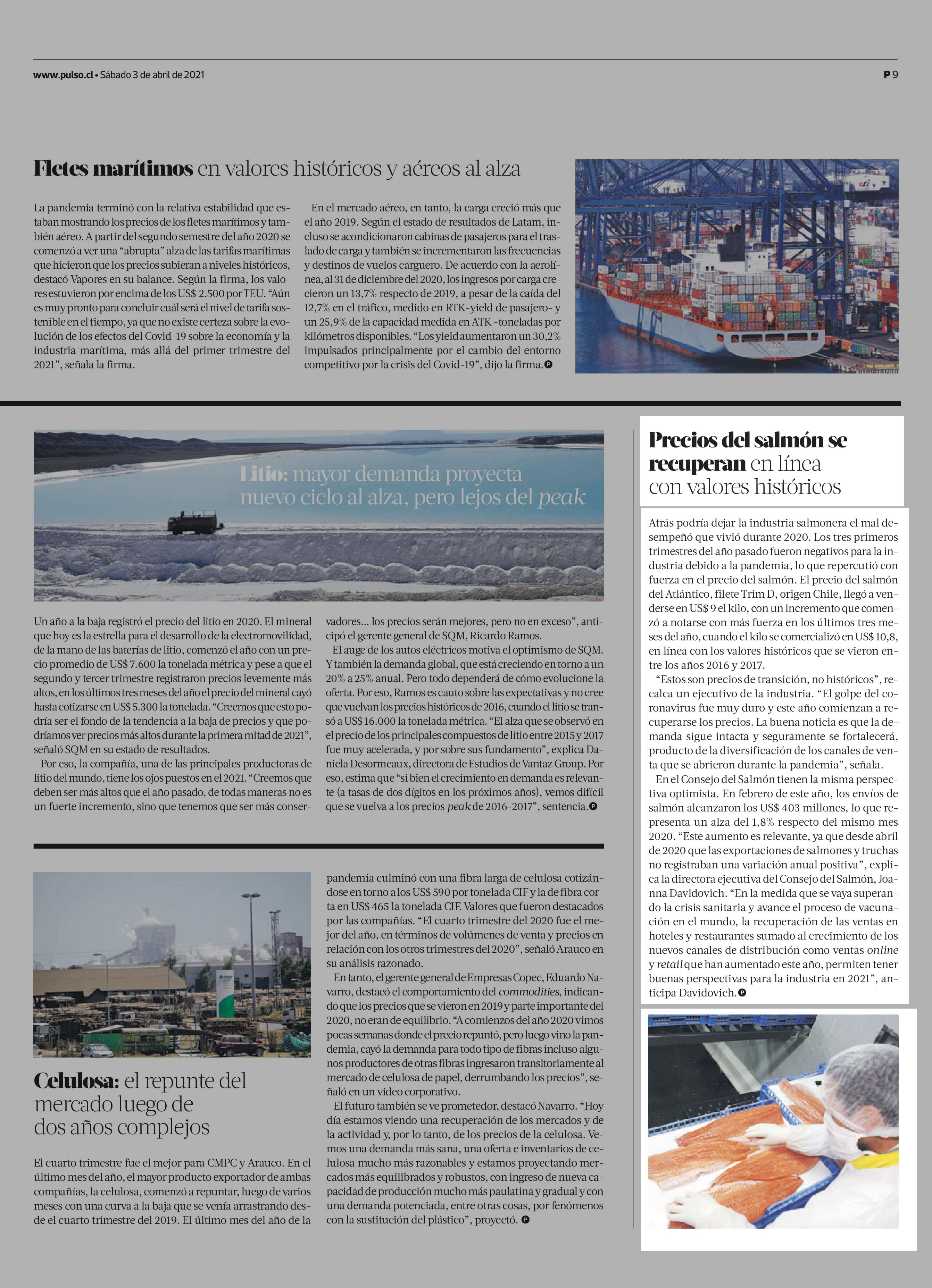 Precios del salmón se recuperan en línea con valores históricos 03-04-2021 La Tercera |