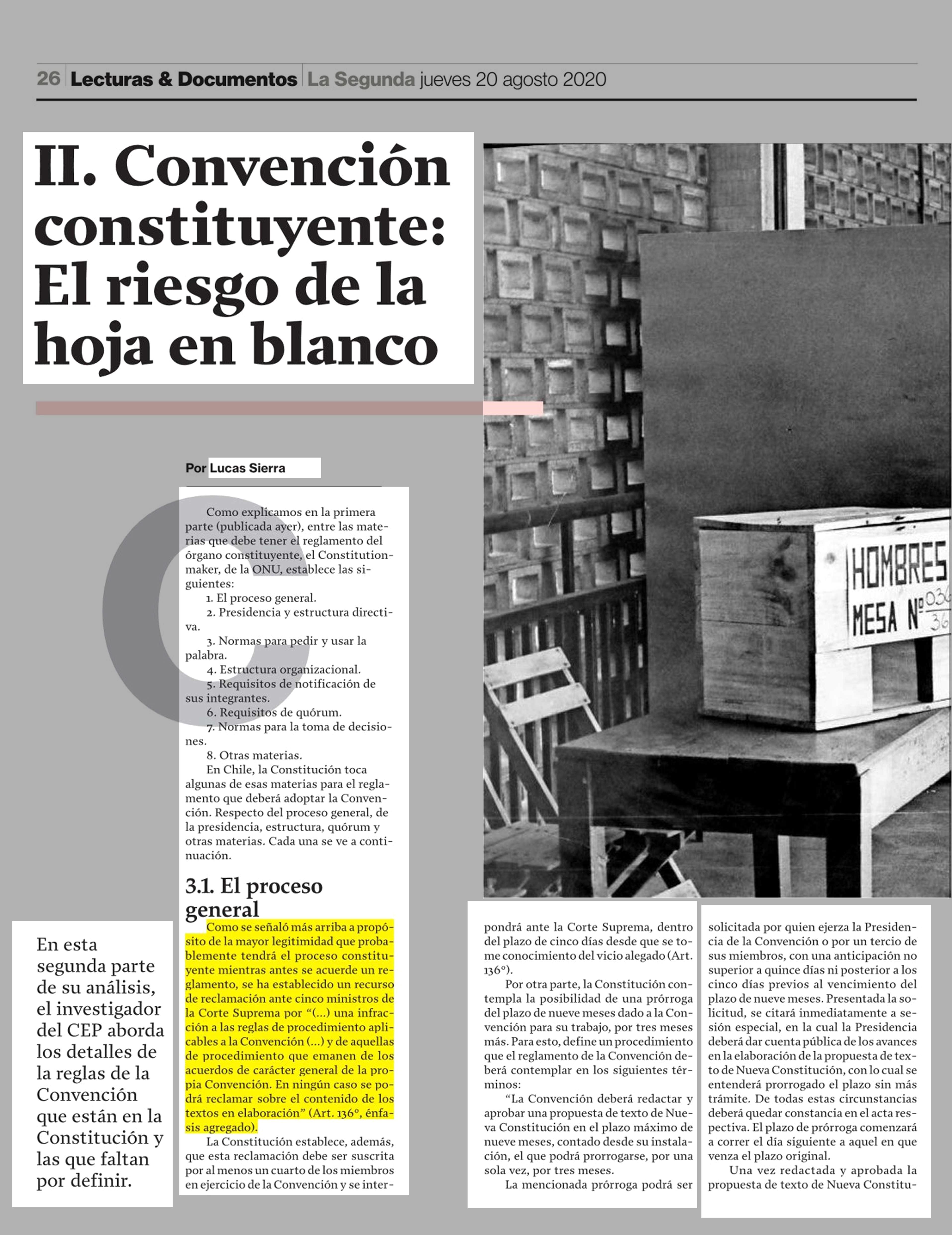 II. Convención constituyente: El riesgo de la hoja en blanco 20-08-2020 La Segunda |