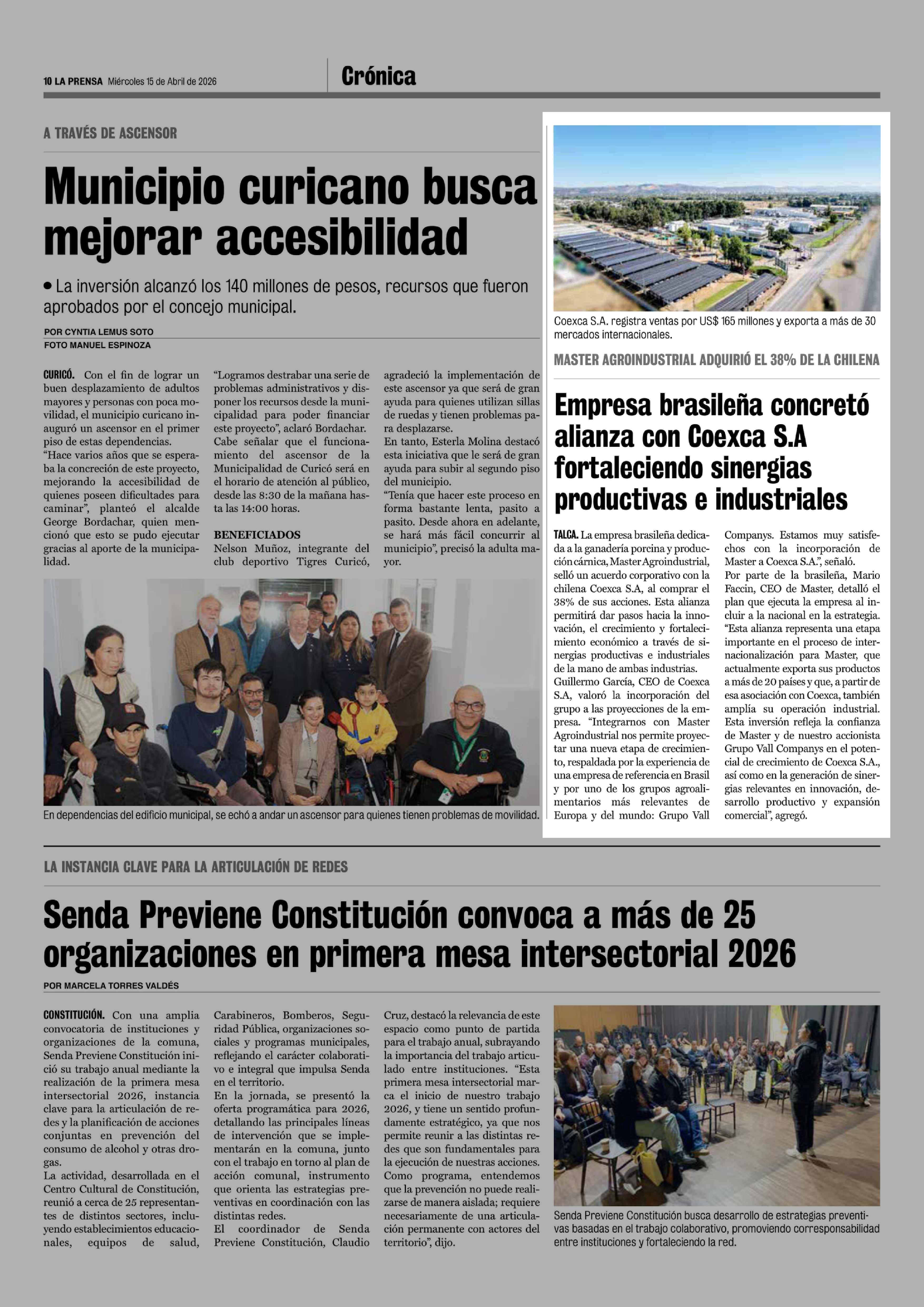 Fuente: La Prensa de Curicó (La Prensa de Curicó) Página(s): 10