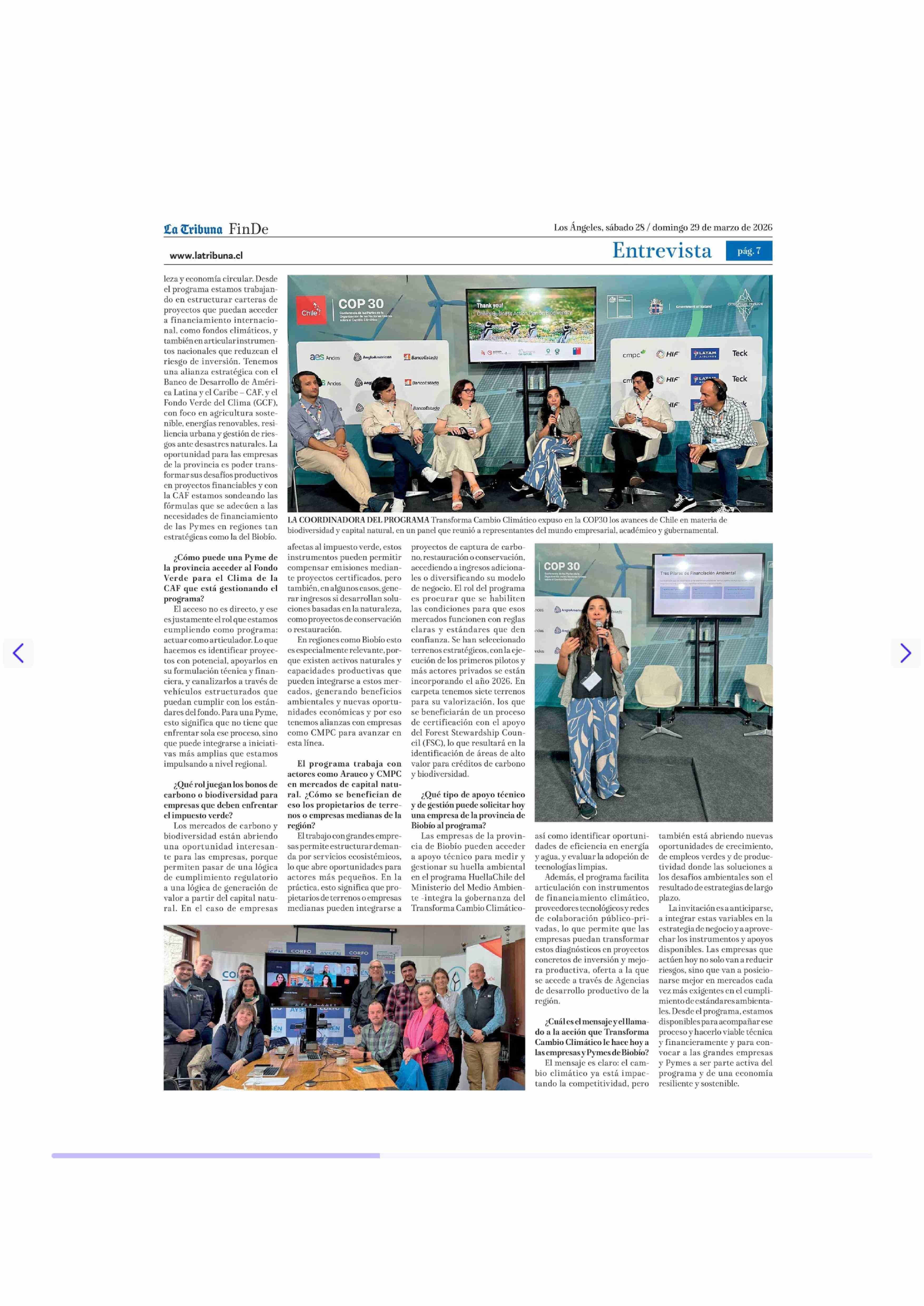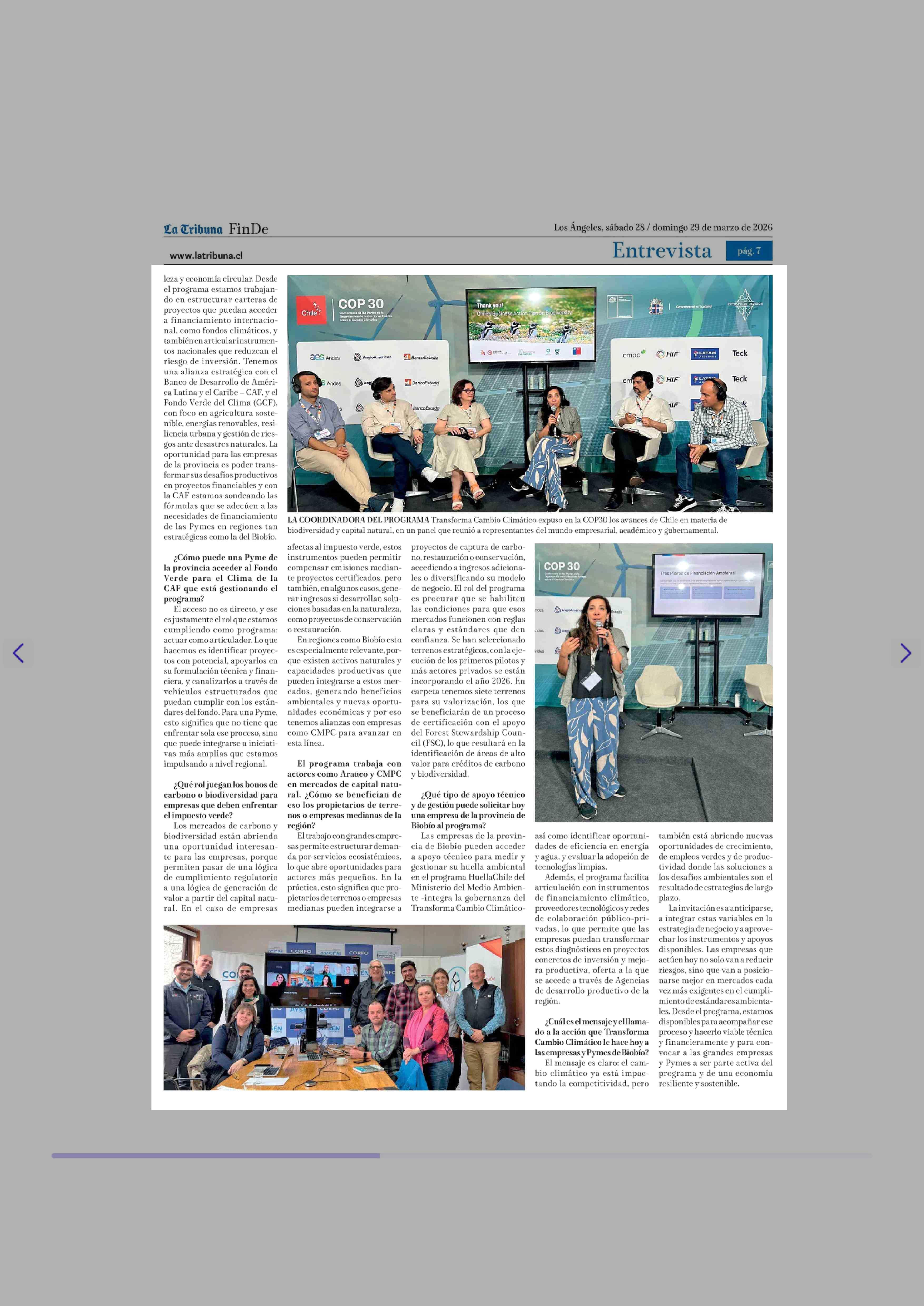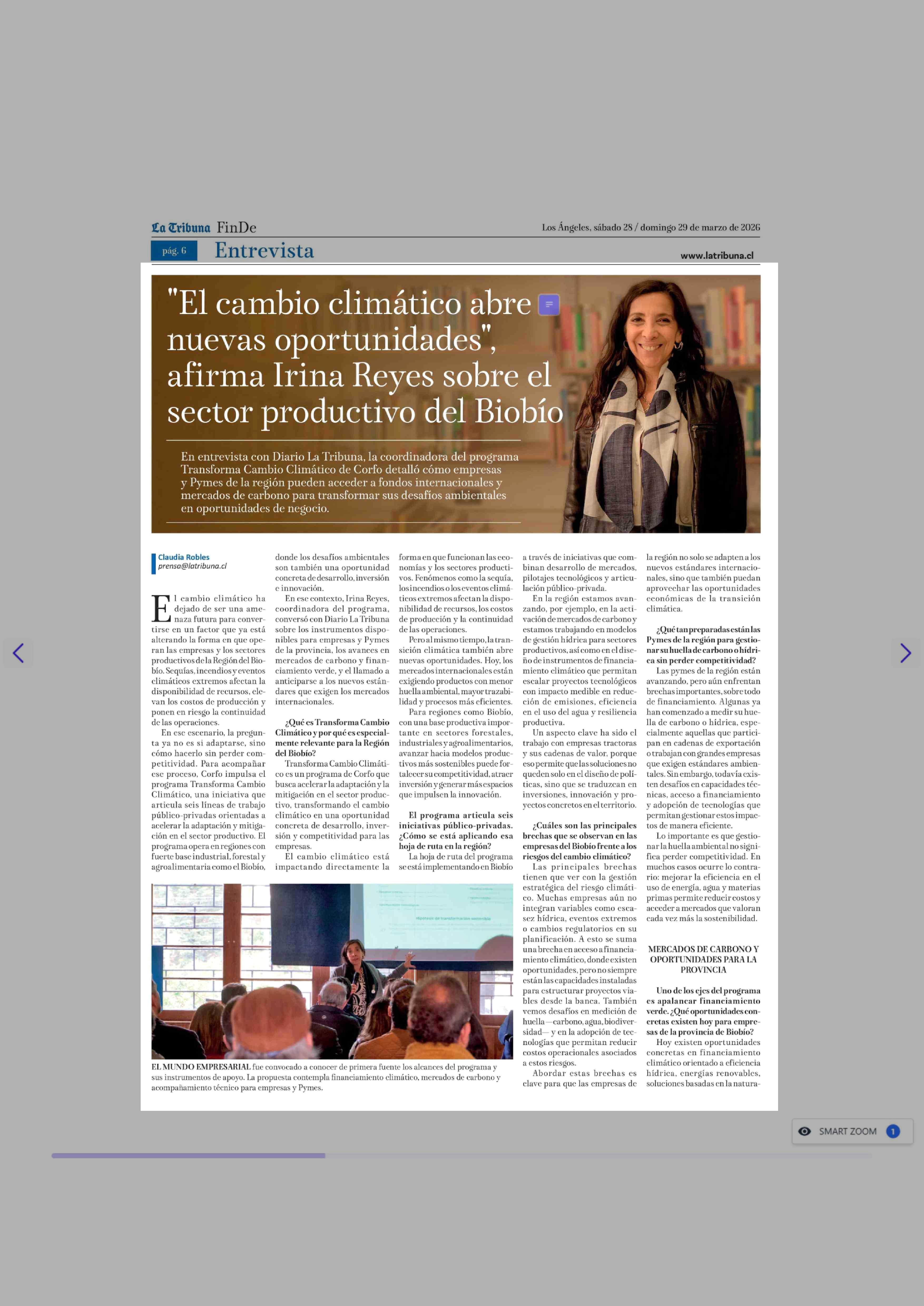 "El cambio climático abre nuevas oportunidades", afirma Irina Reyes sobre el sector productivo del Biobío 28-03-2026 La Tribuna |