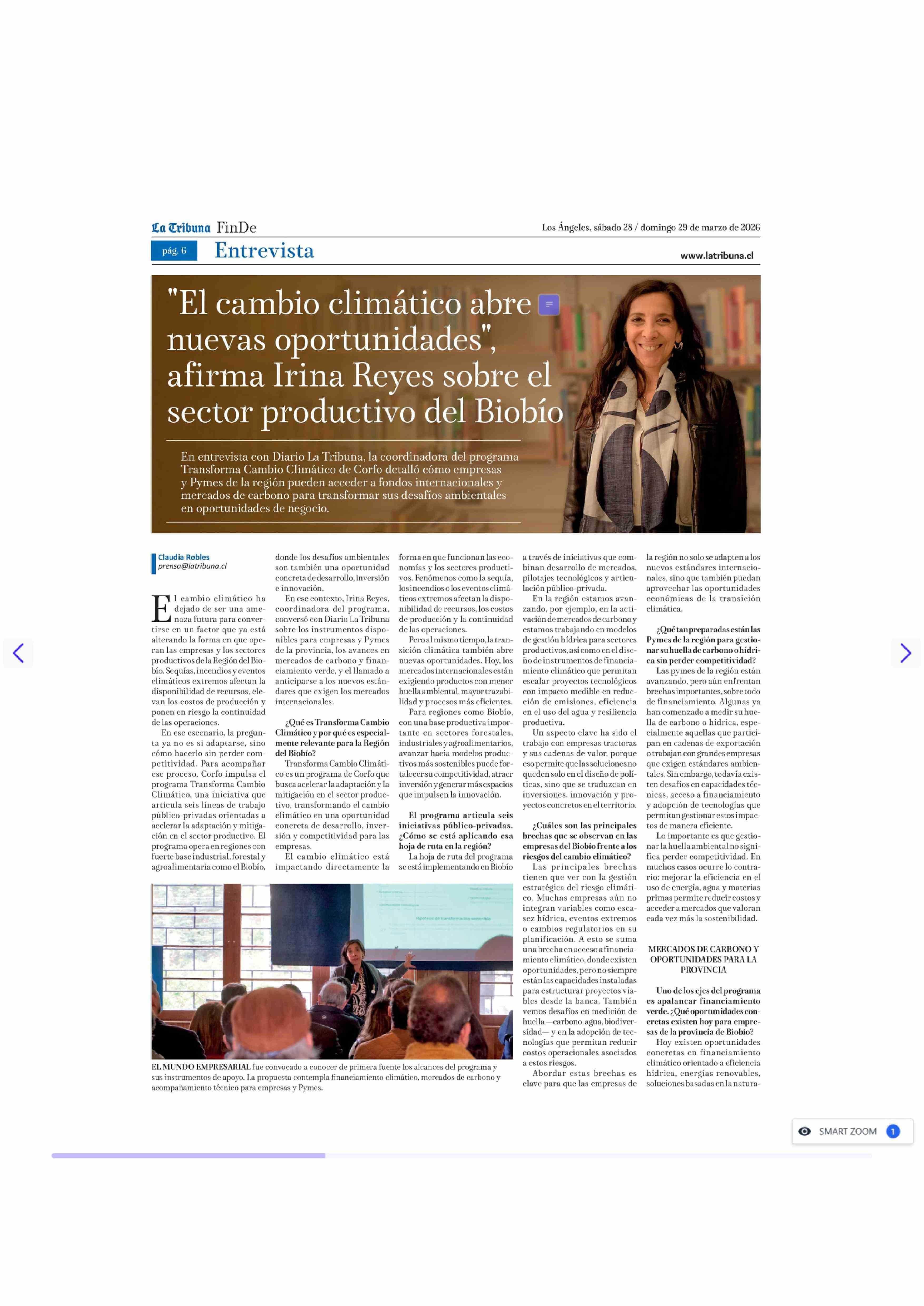 | Título: | "El cambio climático abre nuevas oportunidades", afirma Irina Reyes sobre el sector productivo del Biobío |