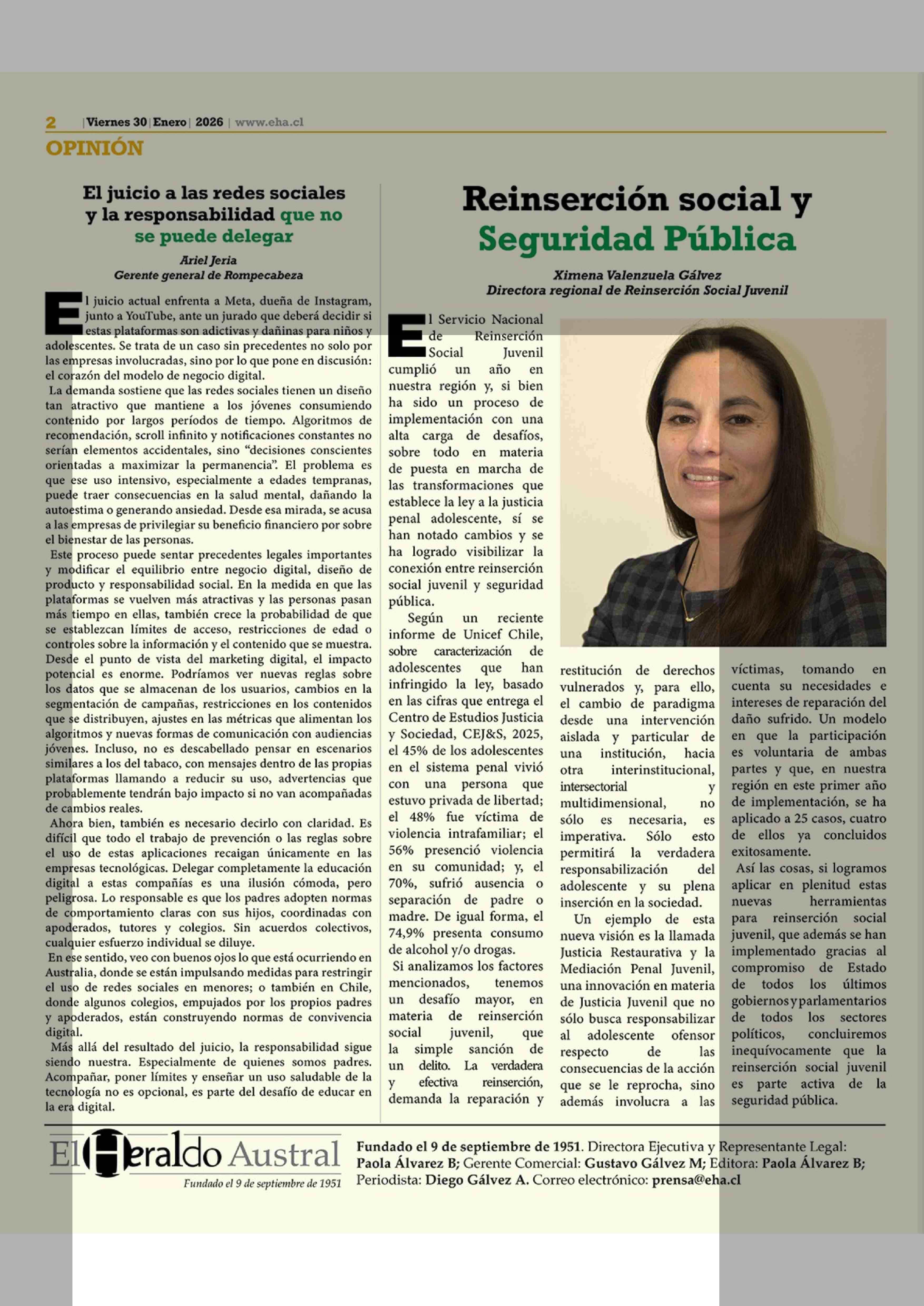 Fecha: 30-01-2026 Sector: Columnas de Opinión Región: Región de Los Lagos
