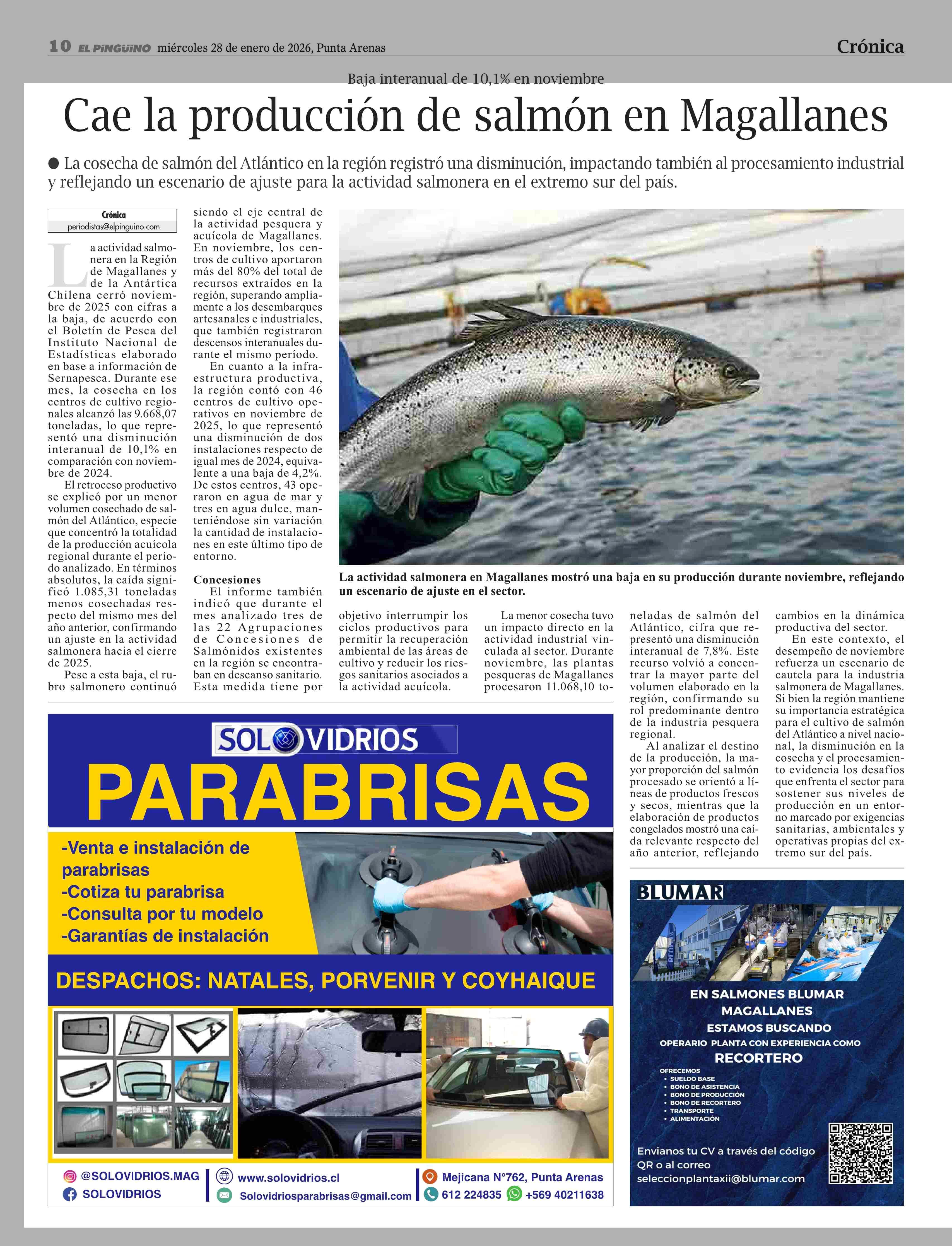 Cae la producción de salmón en Magallanes 28-01-2026 El Pingüino |