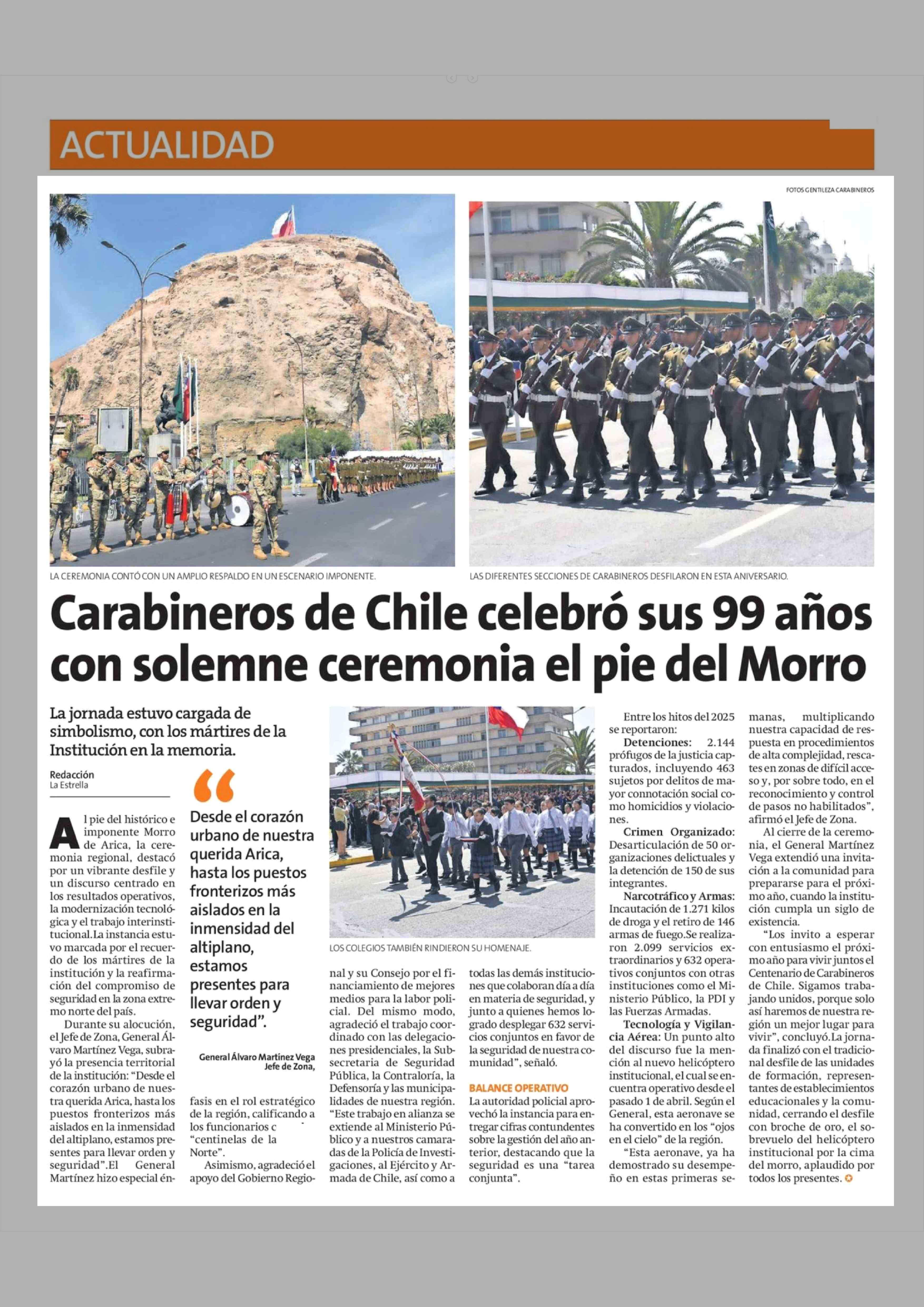 Título: Carabineros de Chile celebró sus 99 años con solemne ceremonia el pie del Morro
