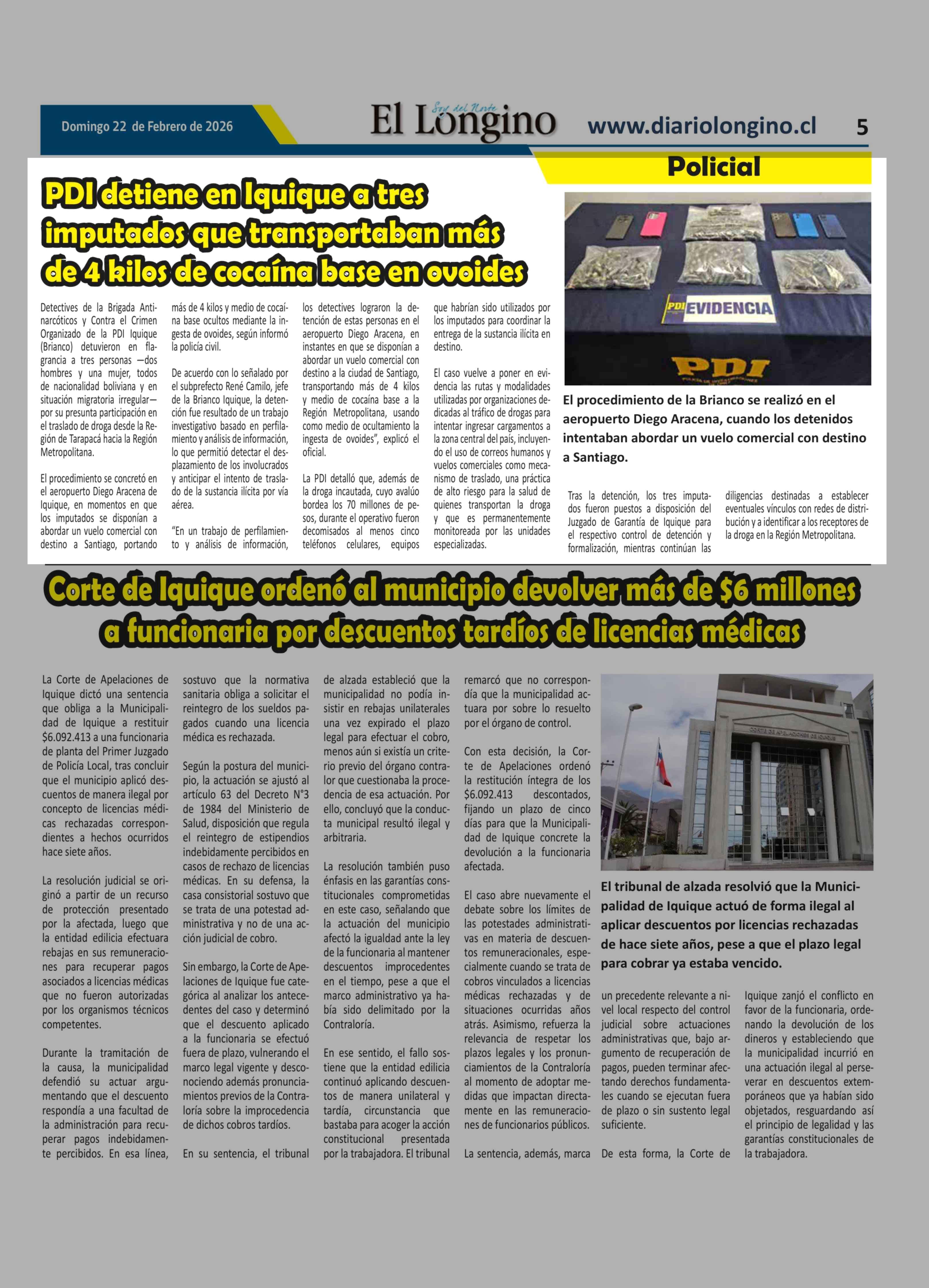 Fecha: 22-02-2026 Sector: Noticia general Región: Región de Tarapacá