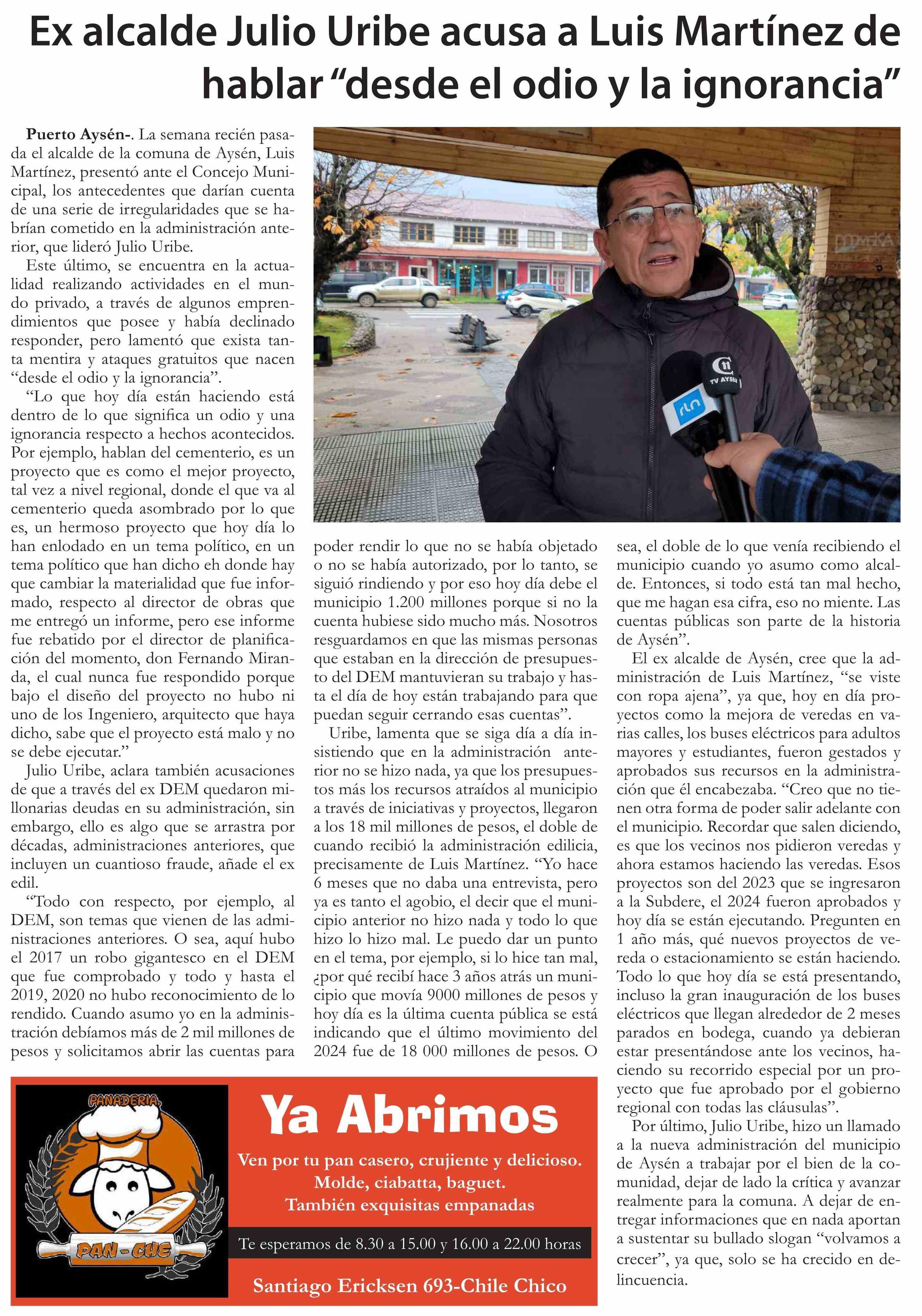 Ex alcalde Julio Uribe acusa a Luis Martínez de hablar “desde el odio y la ignorancia” 20-05-2025 El Divisadero |