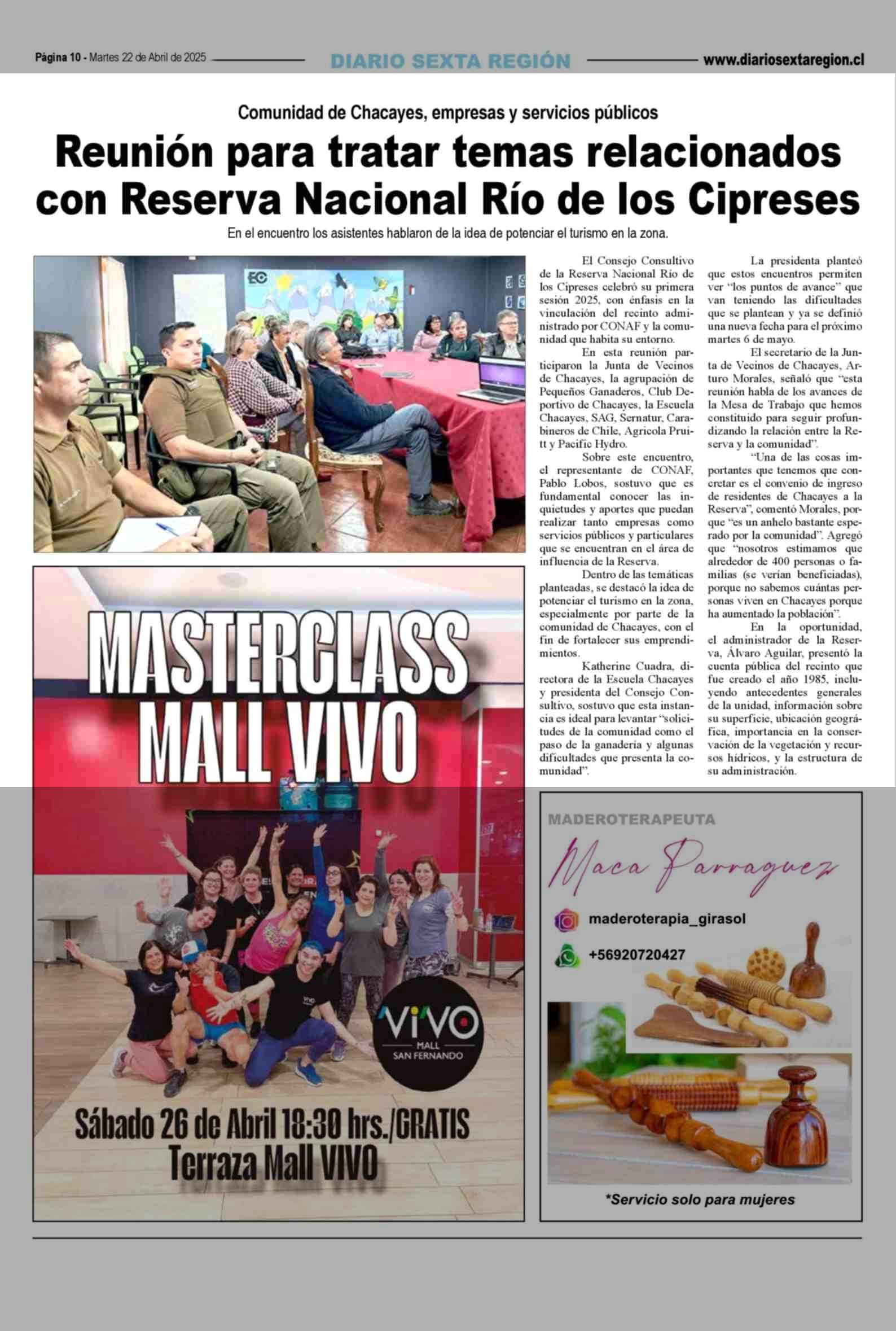 Reunión para tratar temas relacionados con Reserva Nacional Río de los Cipreses 22-04-2025 Diario VI Región |