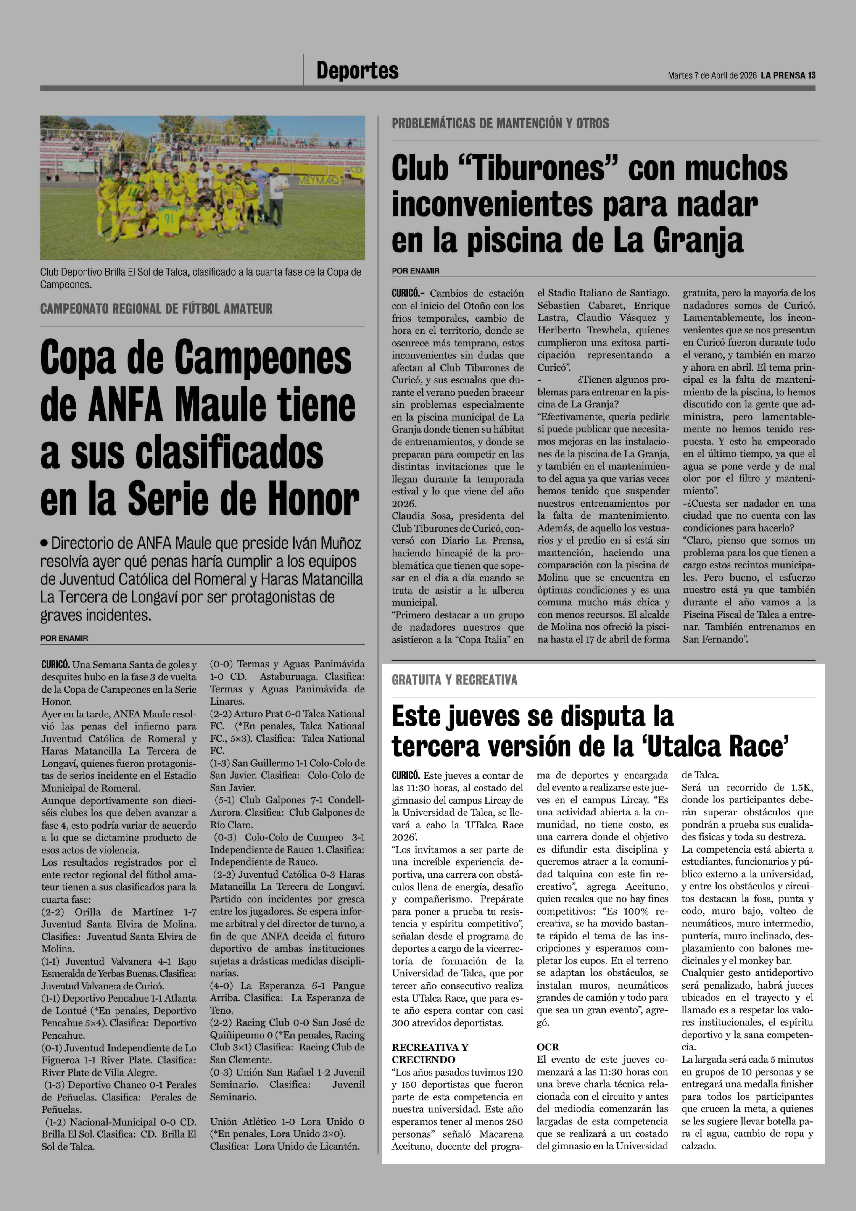 Fuente: La Prensa de Curicó (La Prensa de Curicó) Página(s): 13