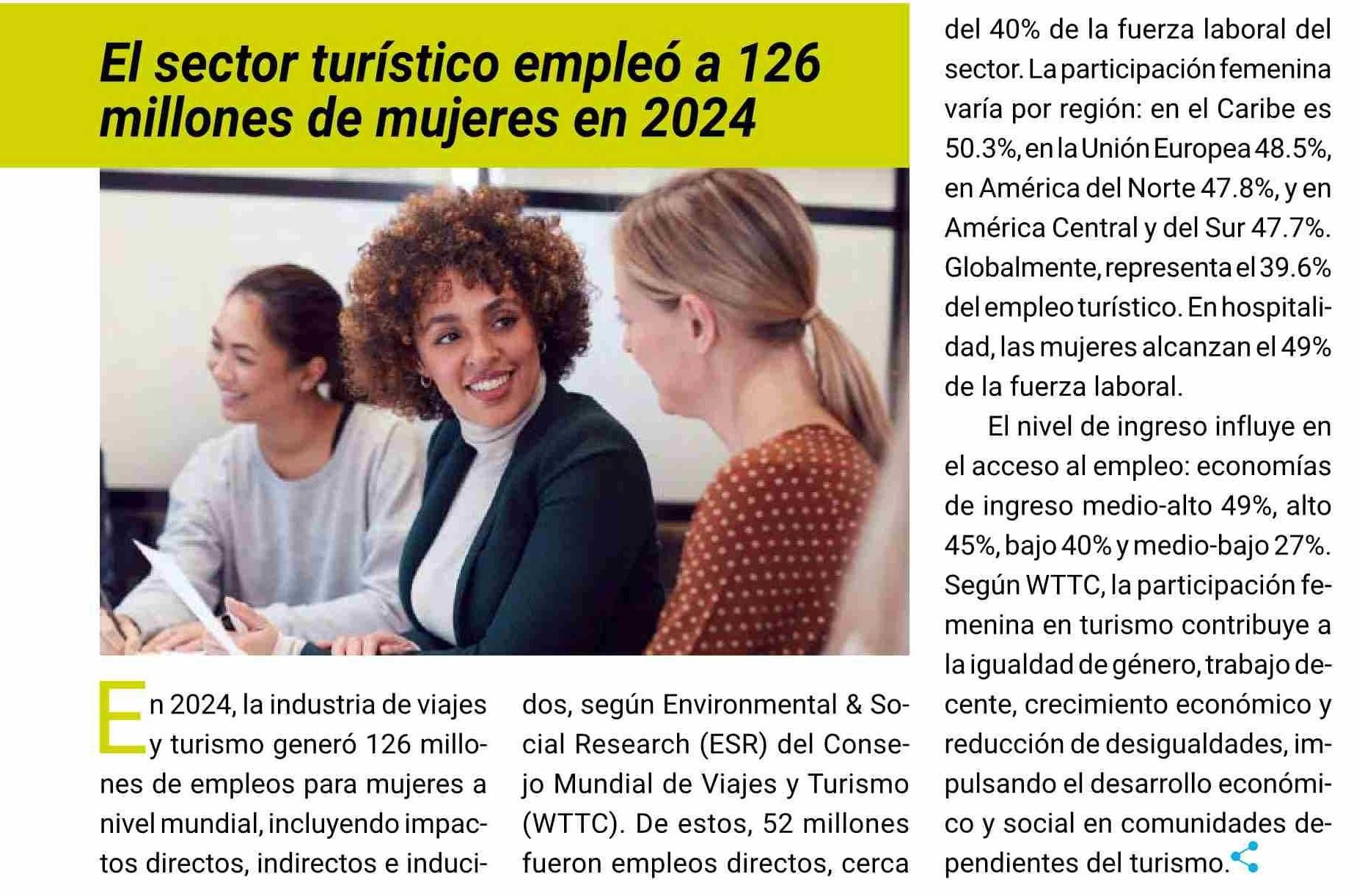 El sector turístico empleó a 126 millones de mujeres en 2024 27-03-2026 Revista La Agencia de Viajes |