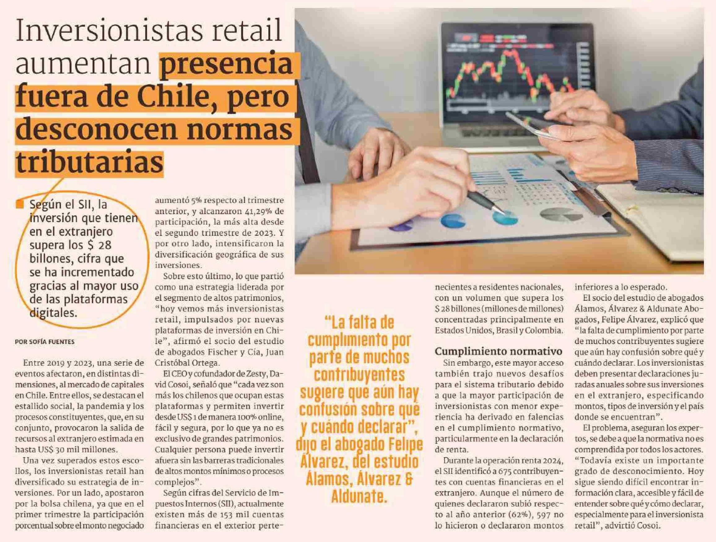 Inversionistas retail aumentan presencia fuera de Chile, pero desconocen normas tributarias 12-05-2025 Diario Financiero |