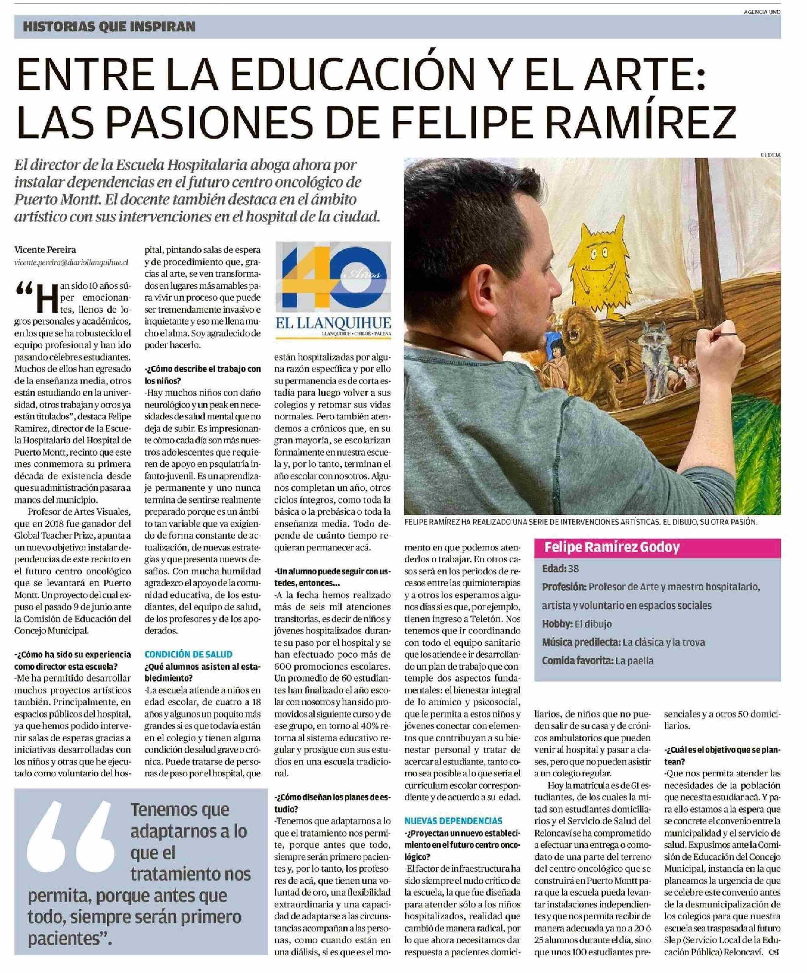 ENTRE LA EDUCACIÓN Y EL ARTE: LAS PASIONES DE FELIPE RAMÍREZ 15-06-2025 El Llanquihue |