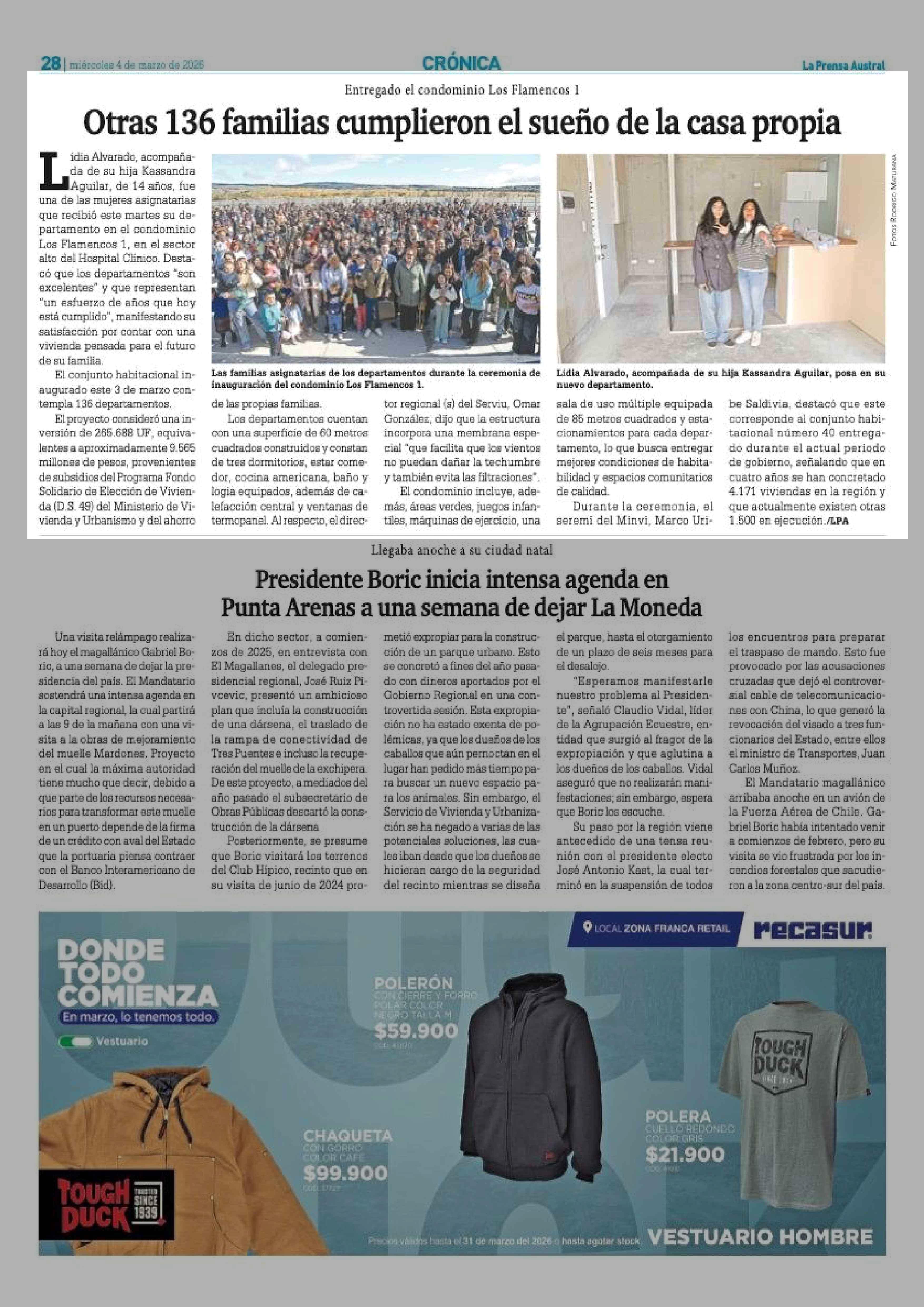 Otras 136 familias cumplieron el sueño de la casa propia 04-03-2026 La Prensa Austral |