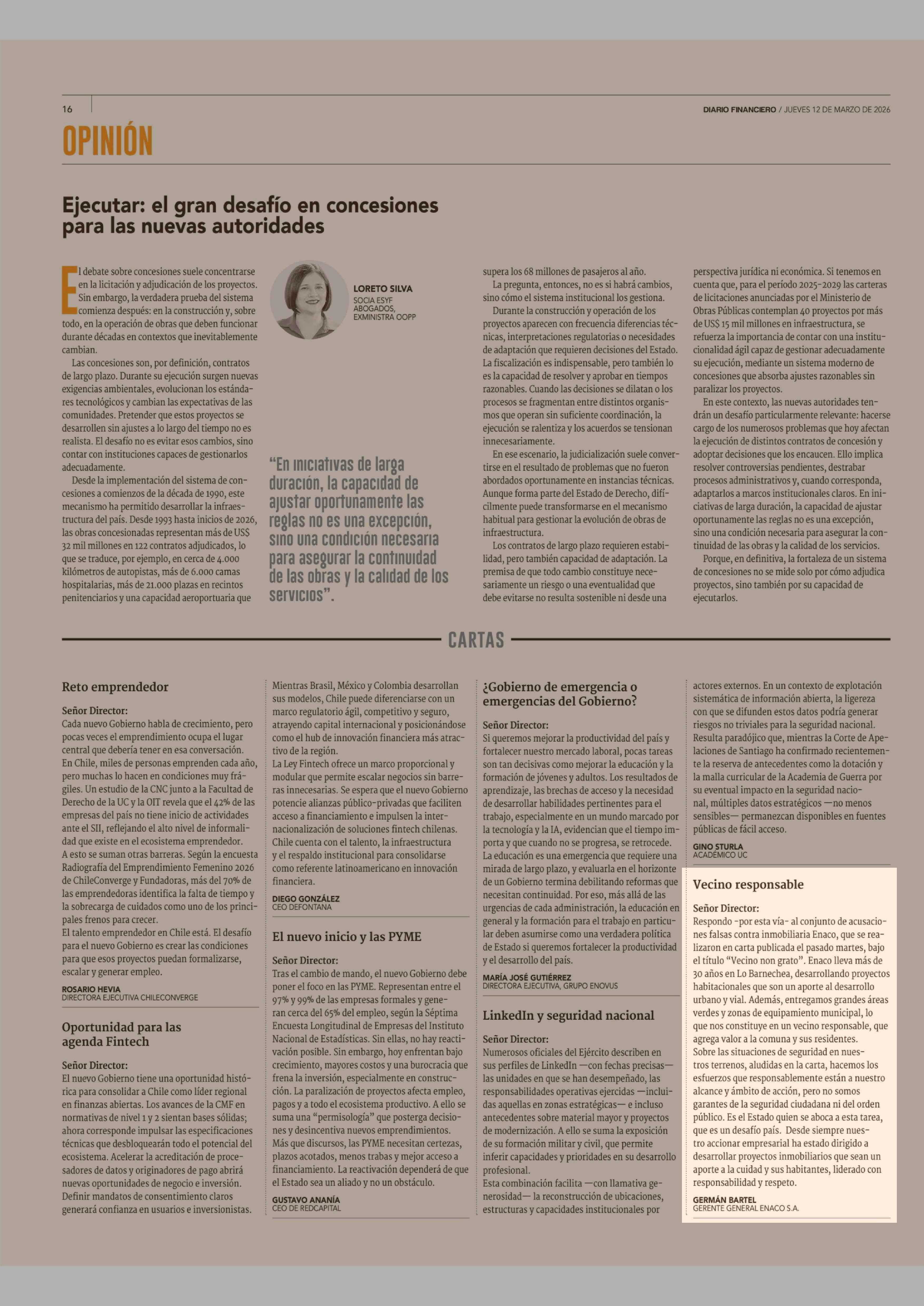Cartas: Vecino responsable 12-03-2026 Diario Financiero |