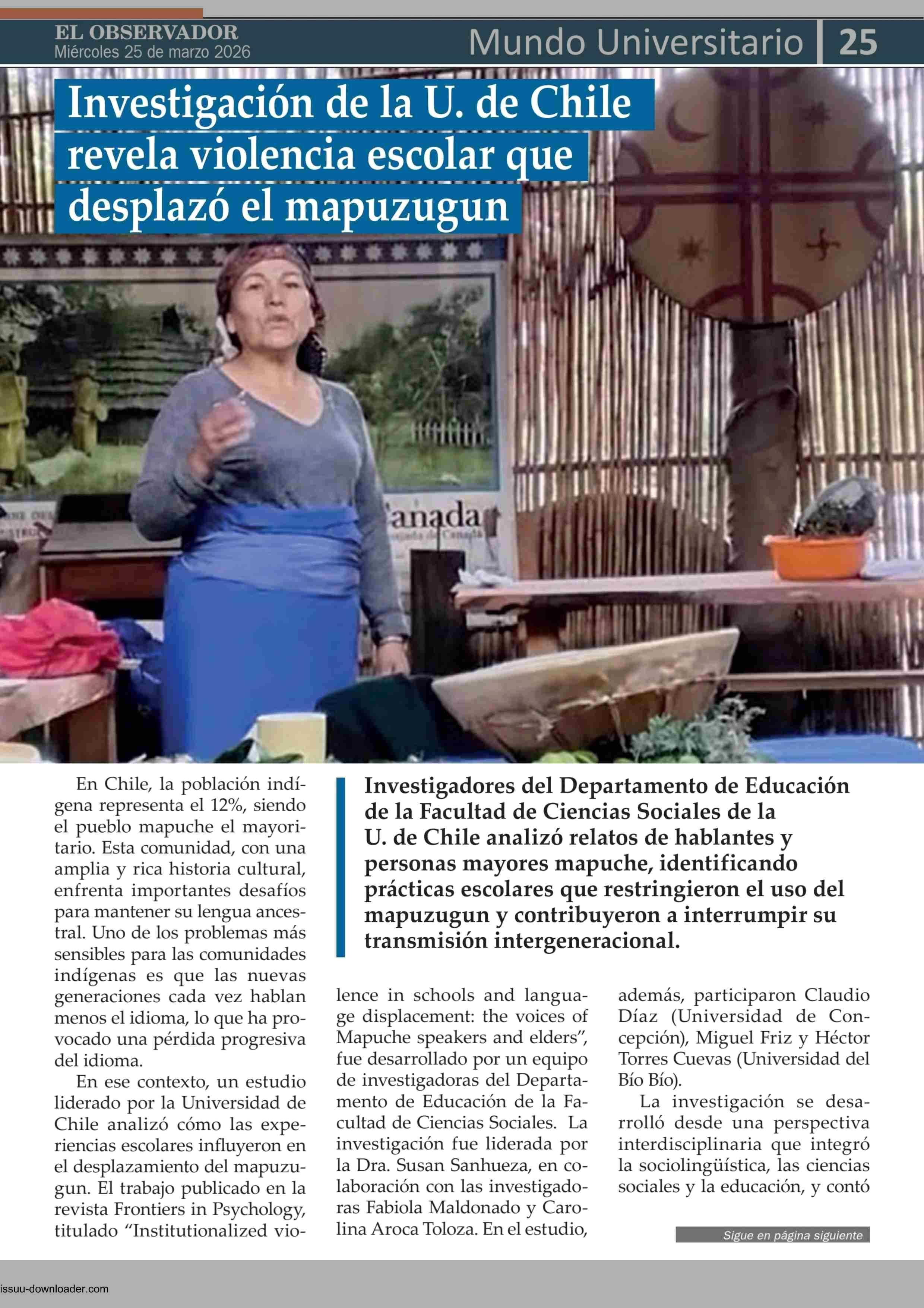 Título: Investigación de la U. de Chile revela violencia escolar que desplazó el mapuzugun