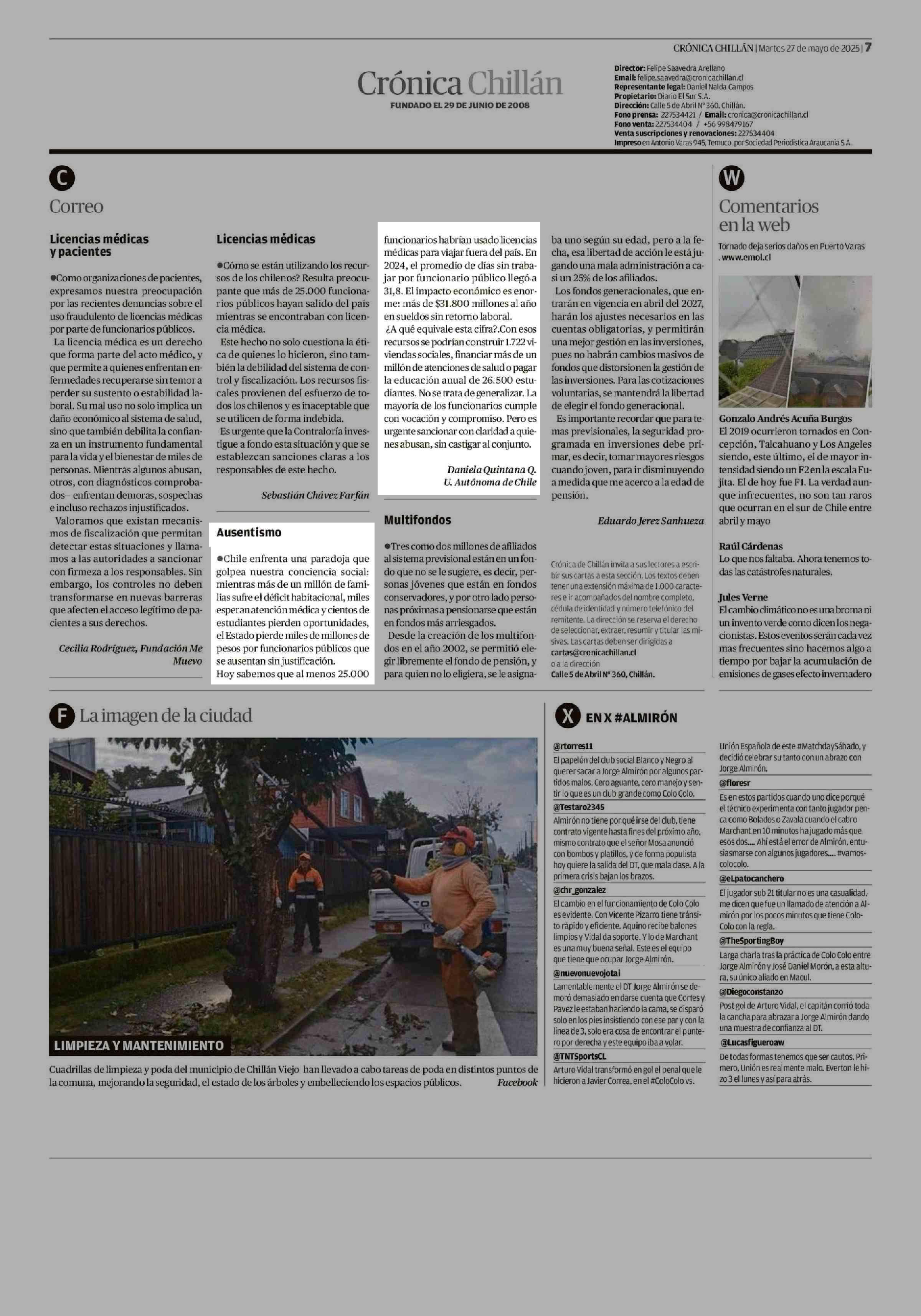 Ausentismo 27-05-2025 Crónica de Chillán |