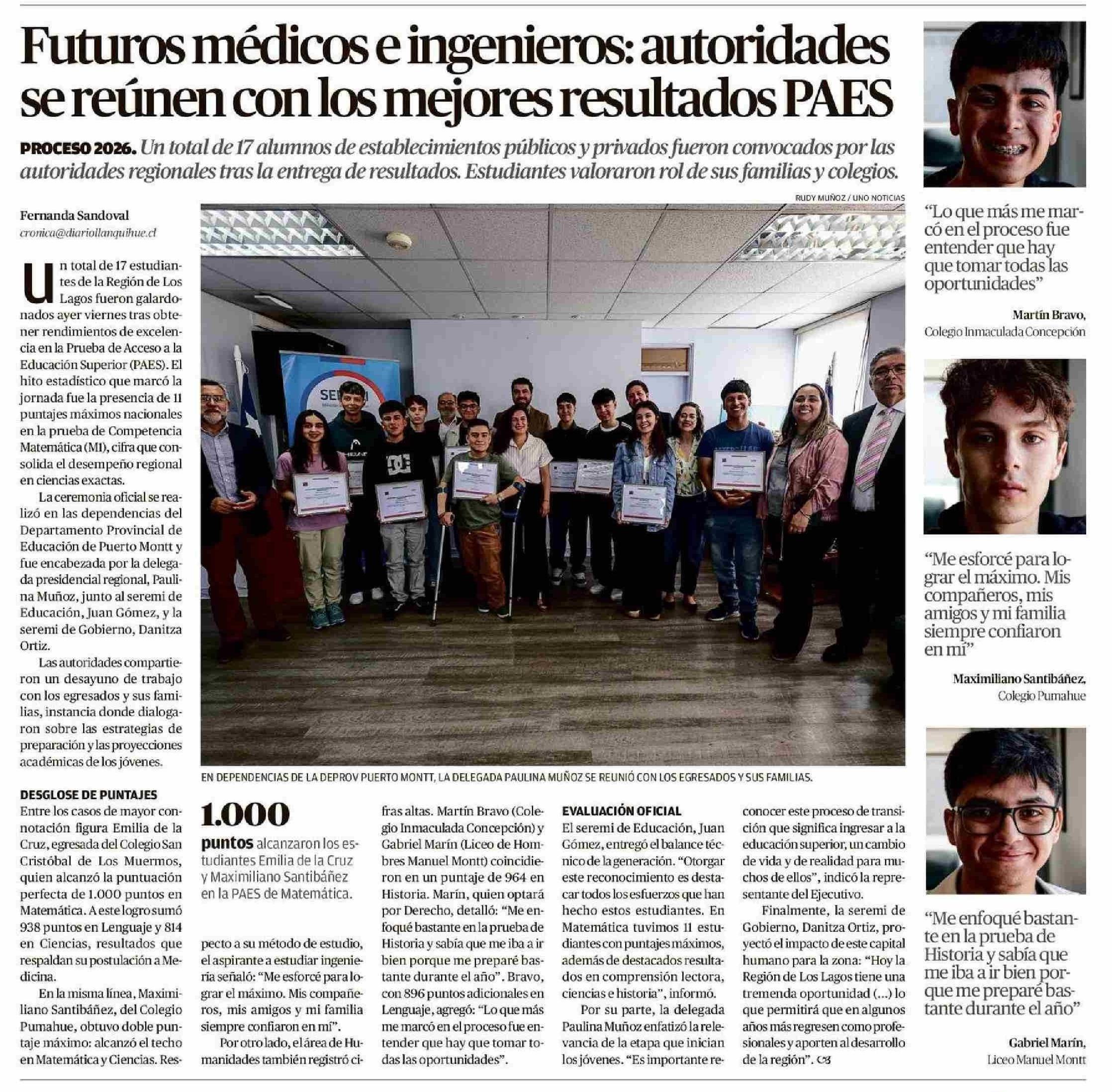 Título: Futuros médicos e ingenieros: autoridades se reúnen con los mejores resultados PAES