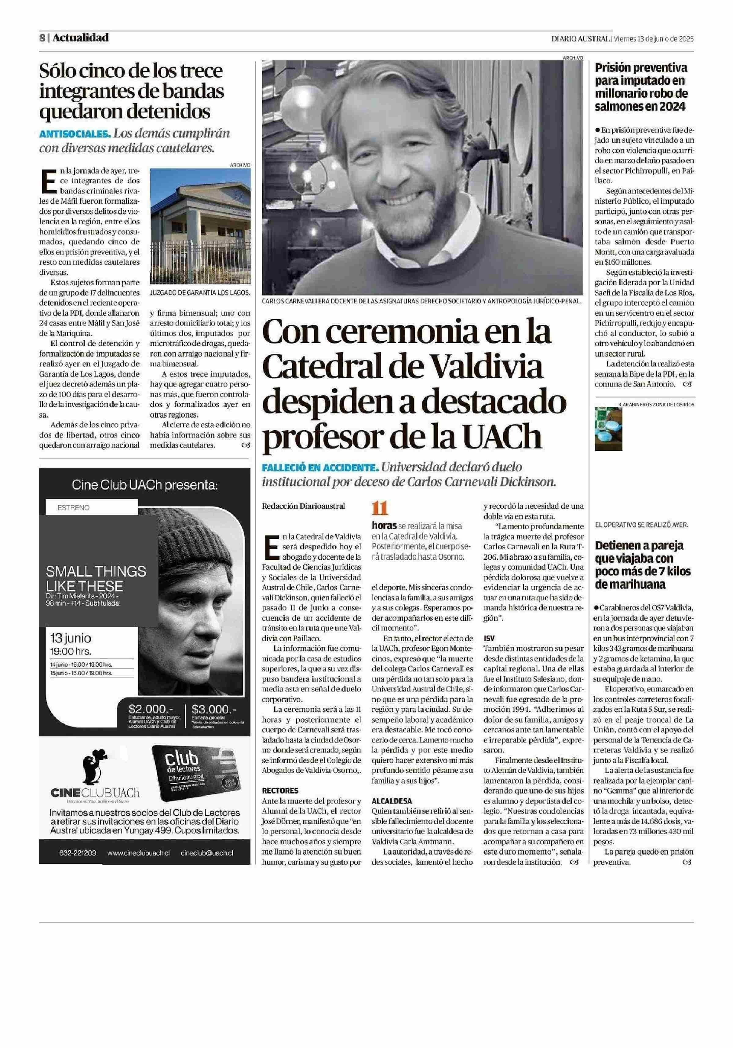 Con ceremonia en la Catedral de Valdivia despiden a destacado profesor de la UACh 13-06-2025 Diario Austral Región de Los Ríos |