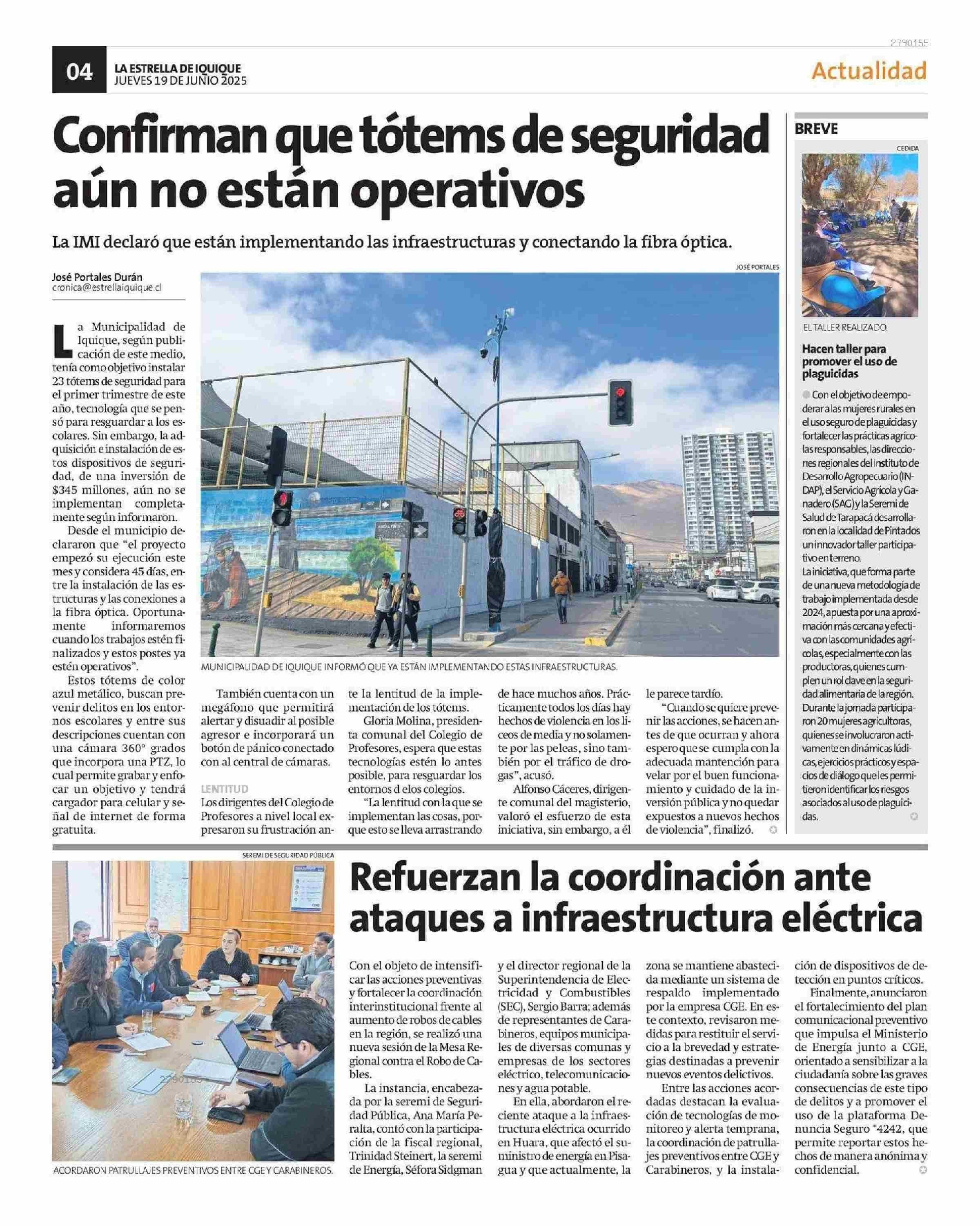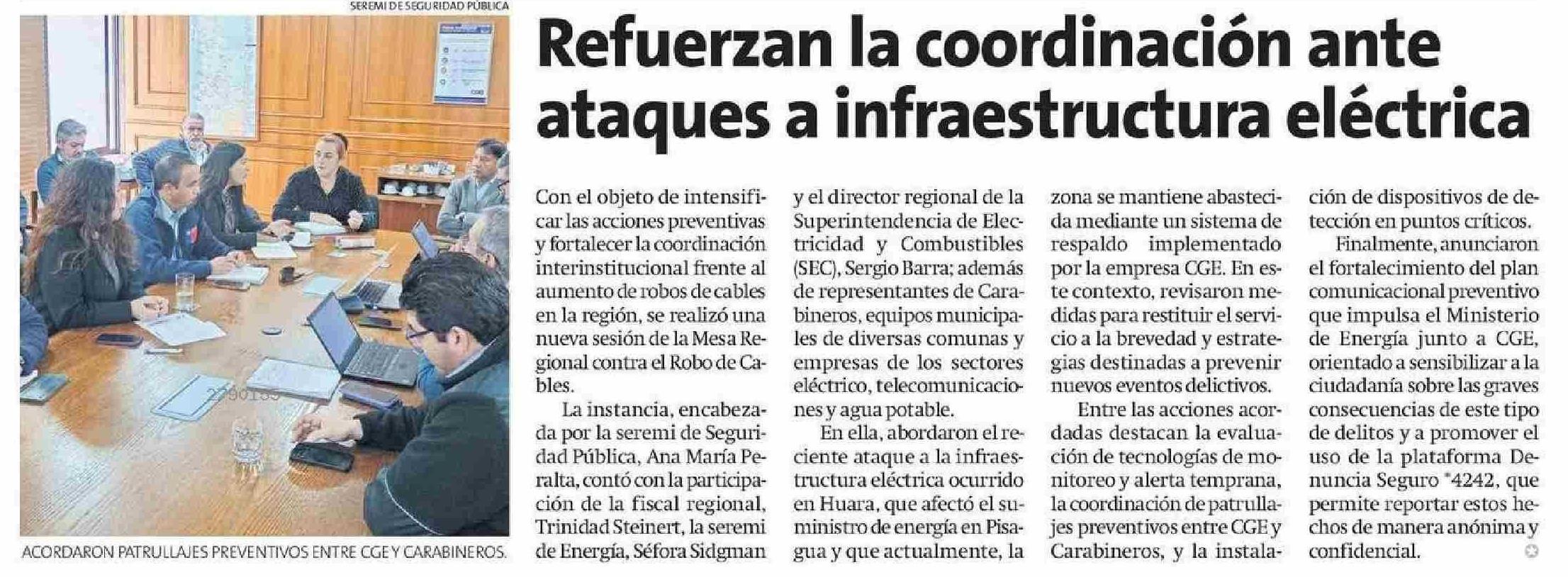 Refuerzan la coordinación ante ataques a infraestructura eléctrica 19-06-2025 La Estrella de Iquique |