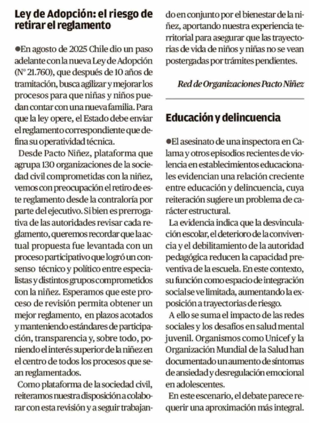 Título: CARTAS: Ley de Adopción, el riesgo de retirar el reglamento