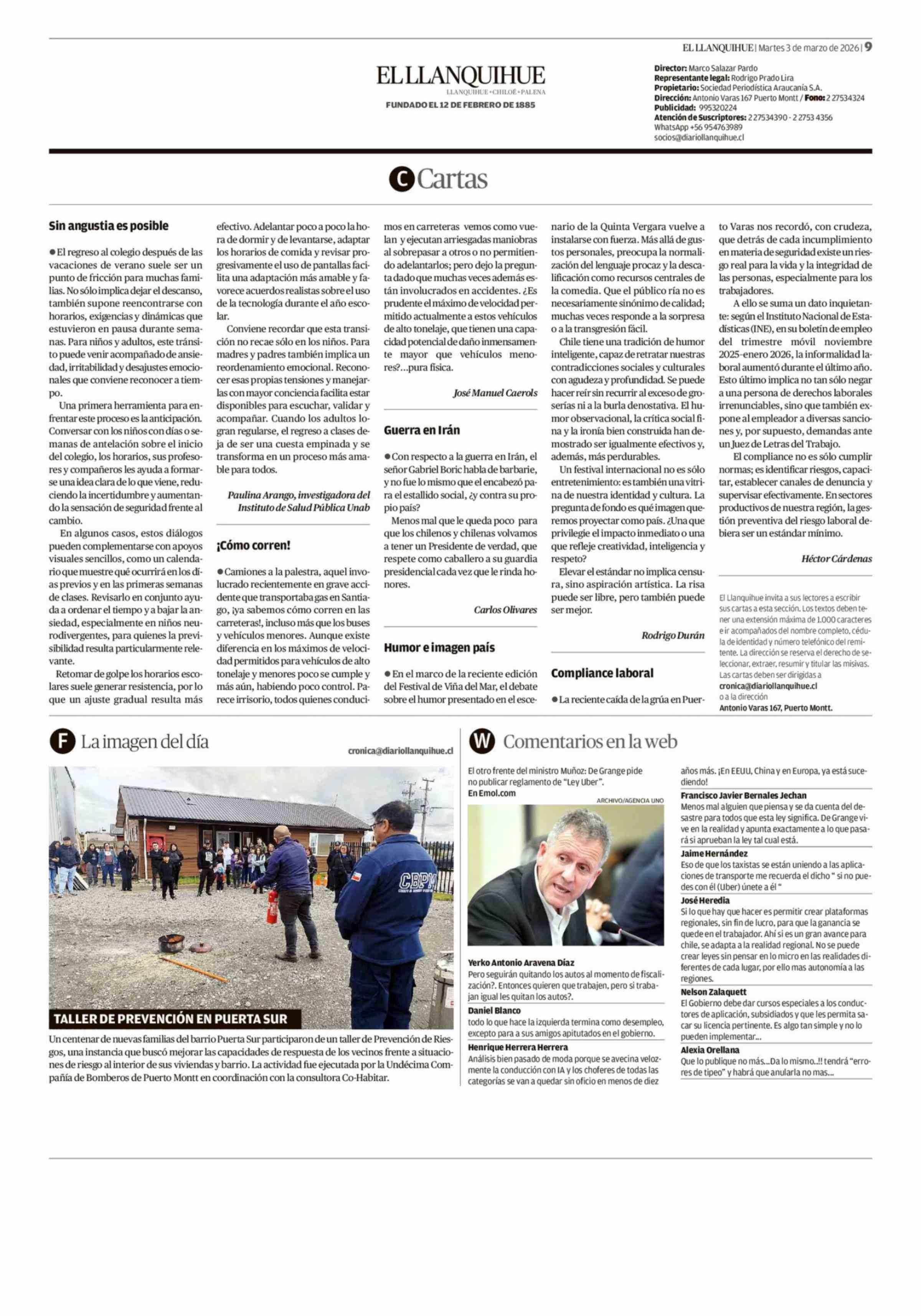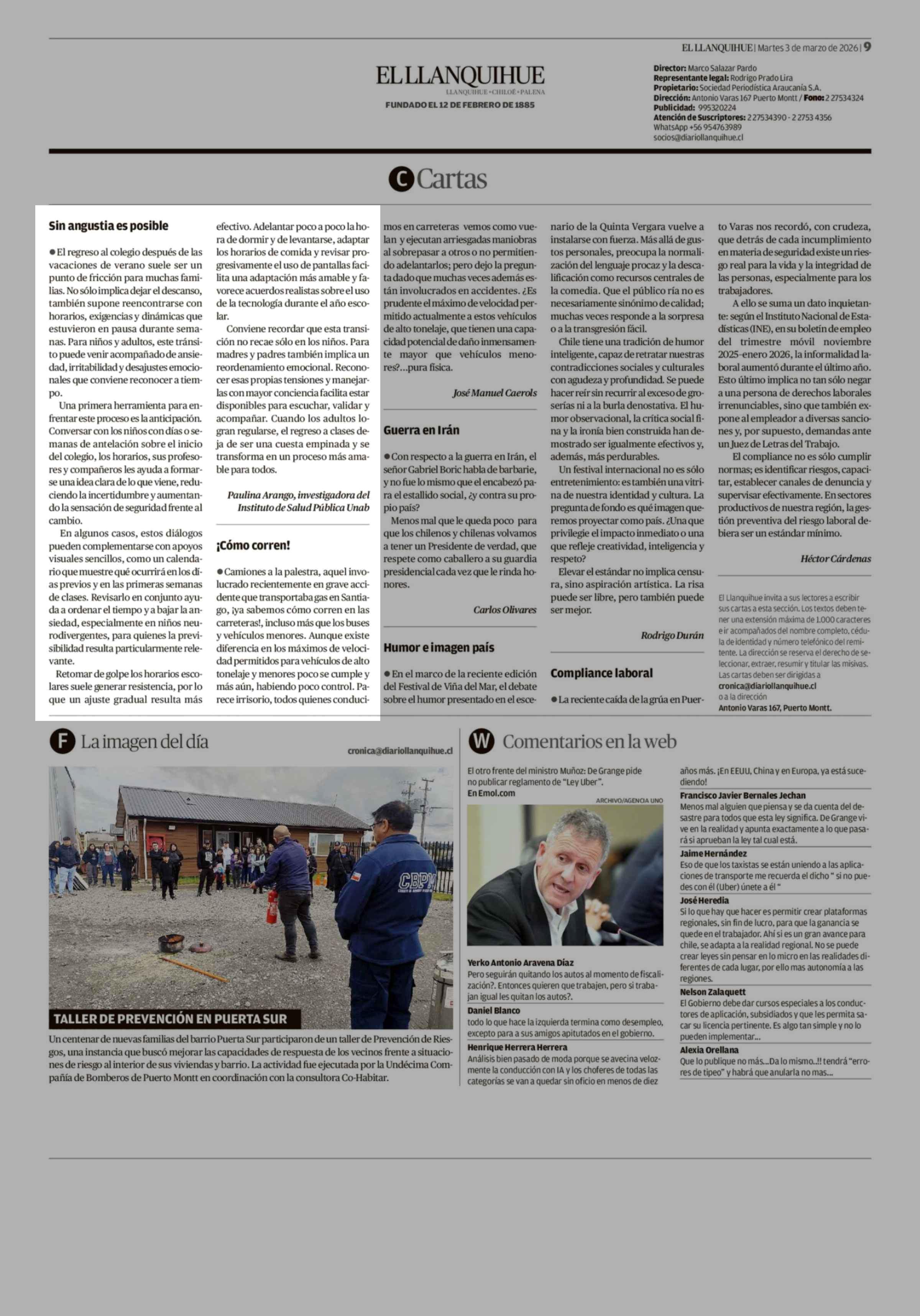 Cartas: Sin angustia es posible 03-03-2026 El Llanquihue |