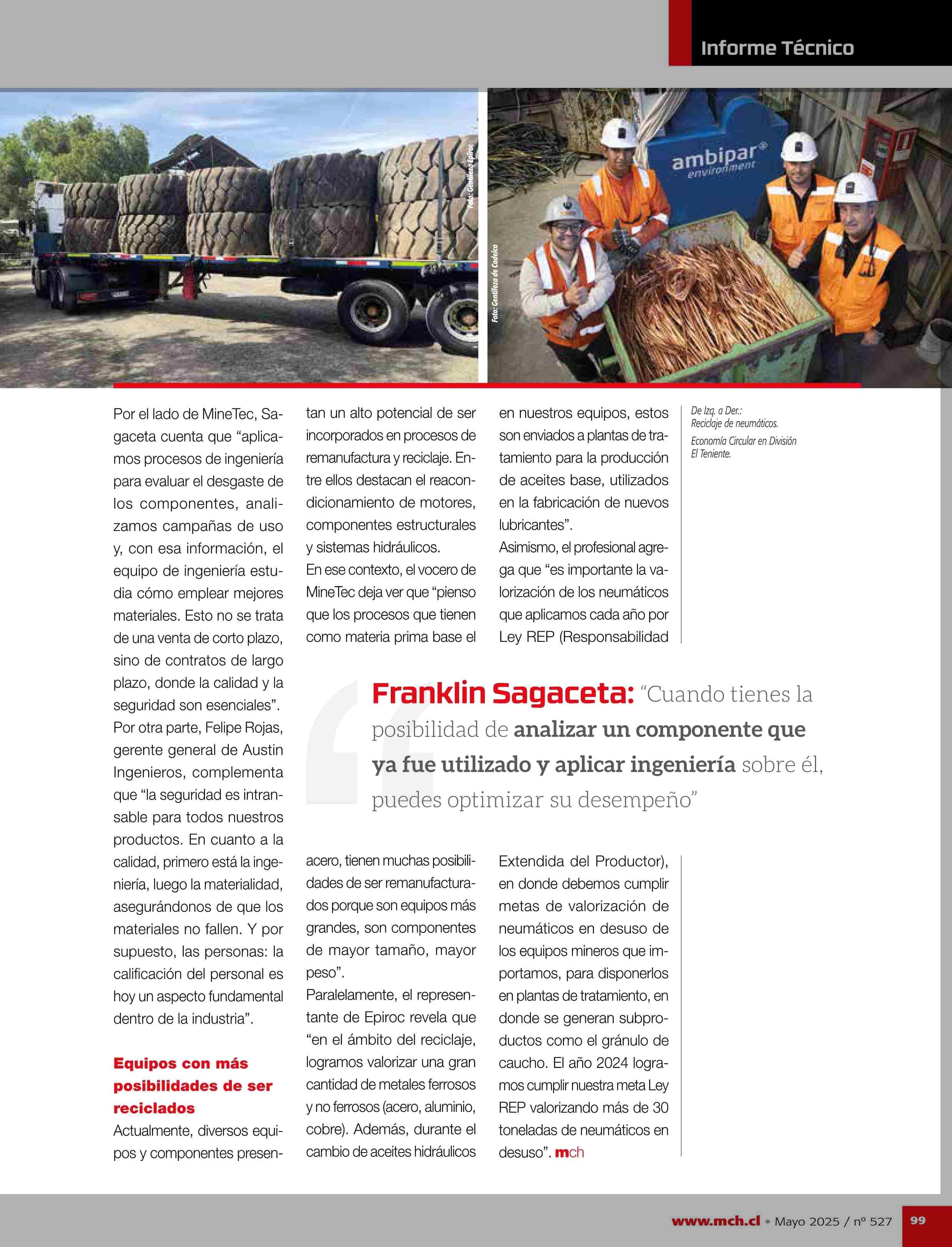 Un beneficio econámico operacional y medioambiental 27-05-2025 Revista Minería Chilena |