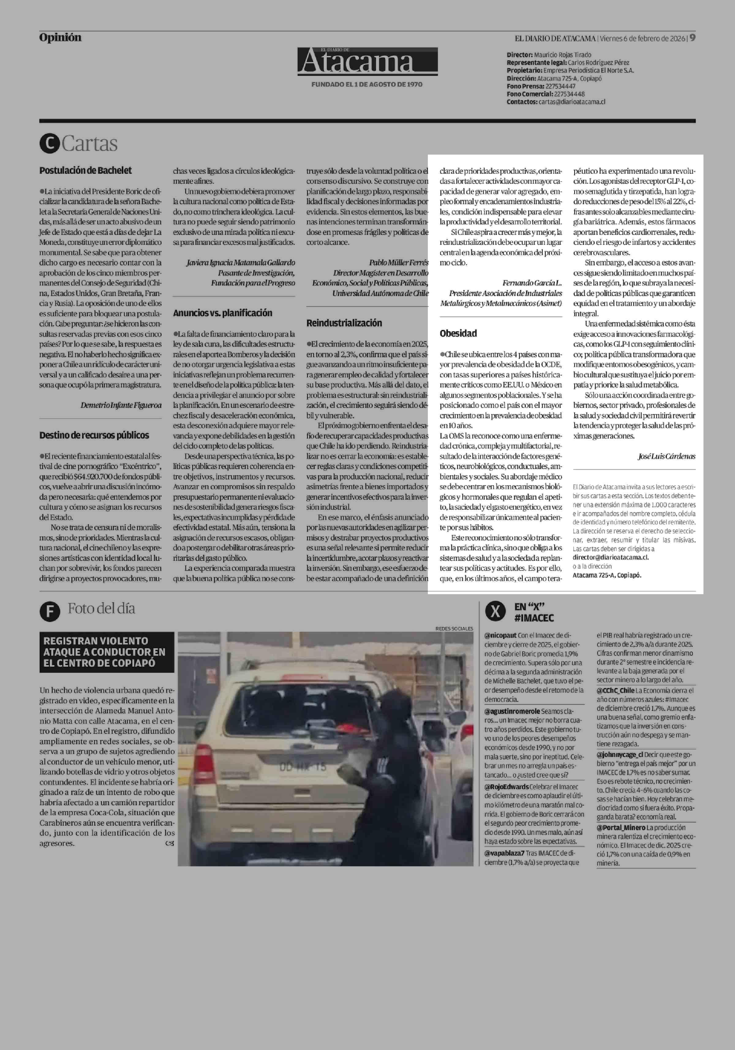 Cartas: Obesidad 06-02-2026 El Diario de Atacama |