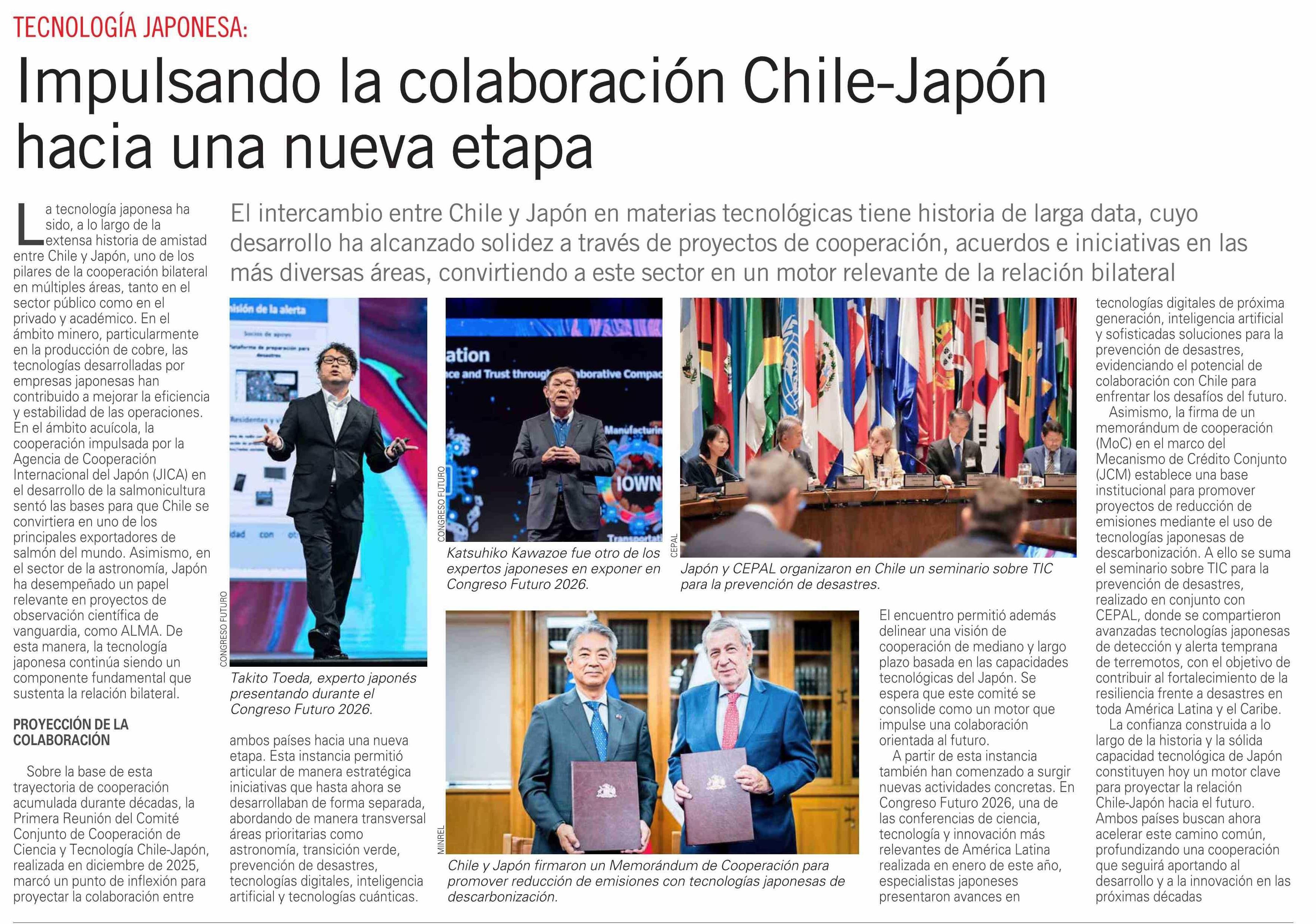 Impulsando la colaboración Chile-Japón hacia una nueva etapa 26-03-2026 El Mercurio |