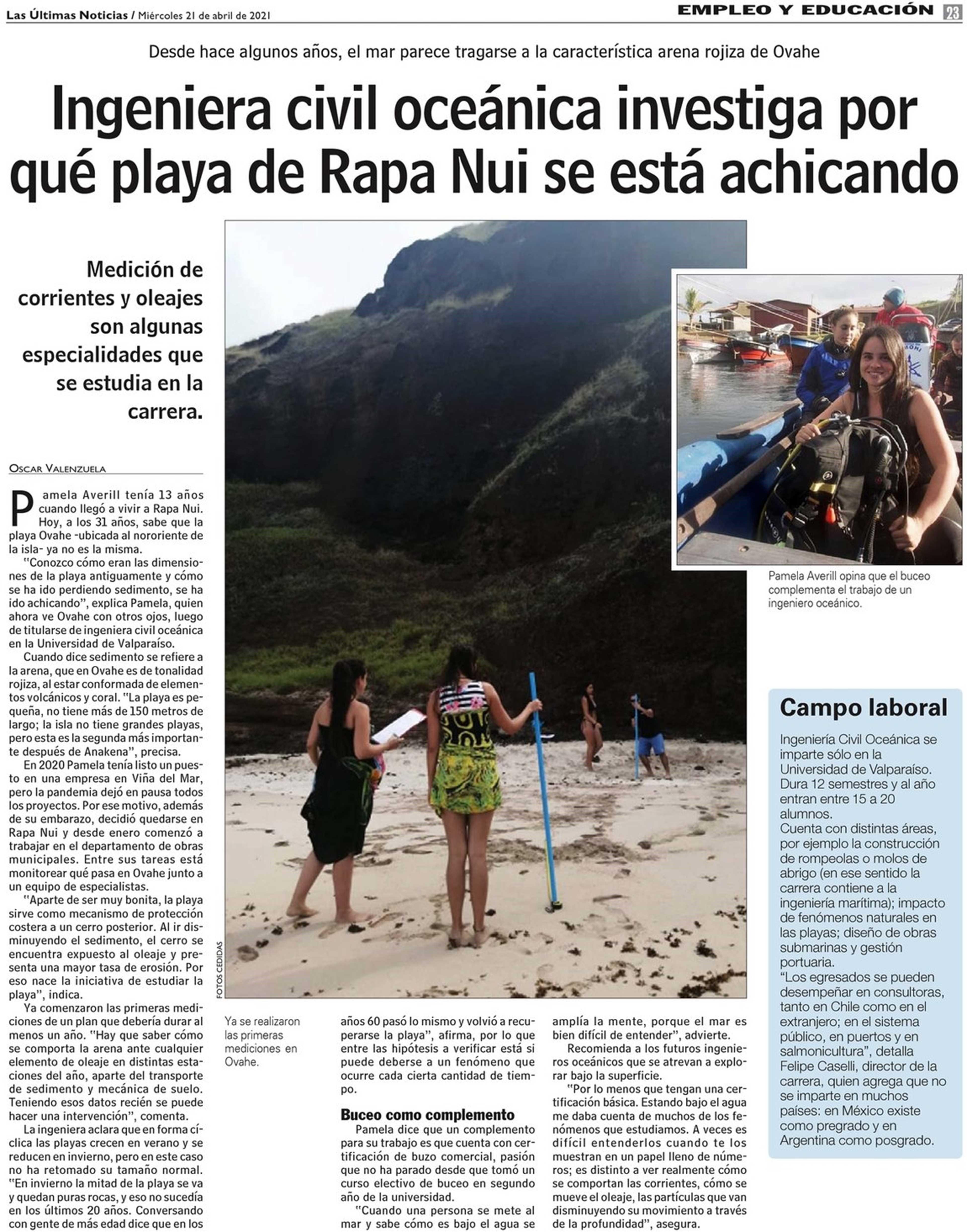 Ingeniera civil oceánica investiga por qué playa de Rapa Nui se está achicando 21-04-2021 Las Últimas Noticias |