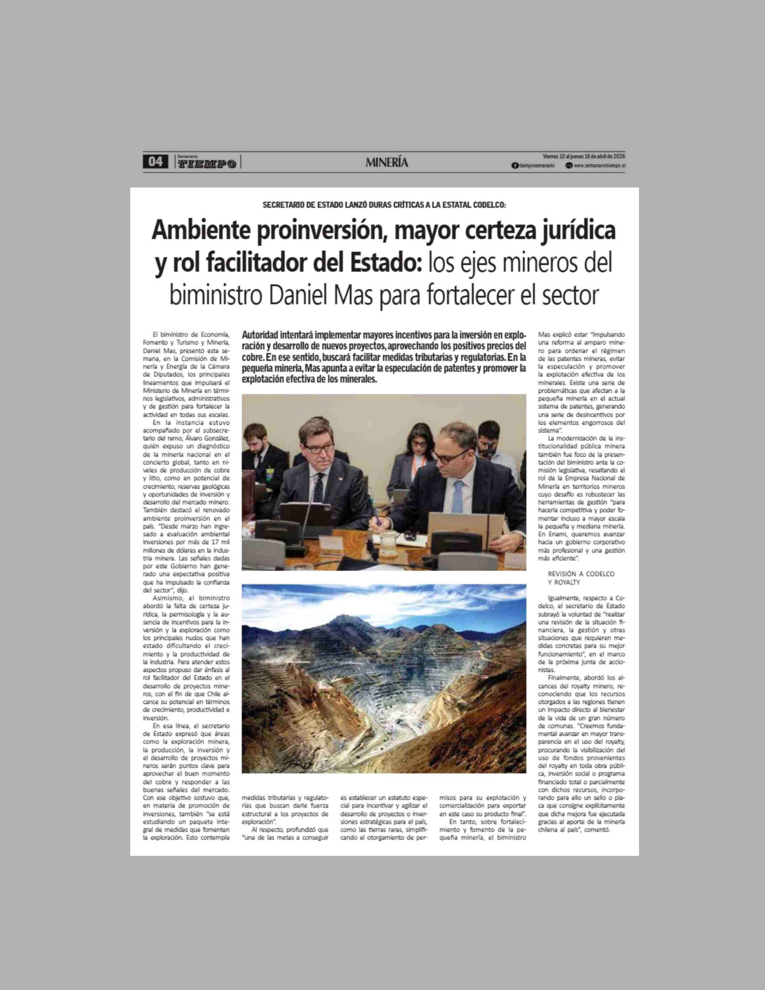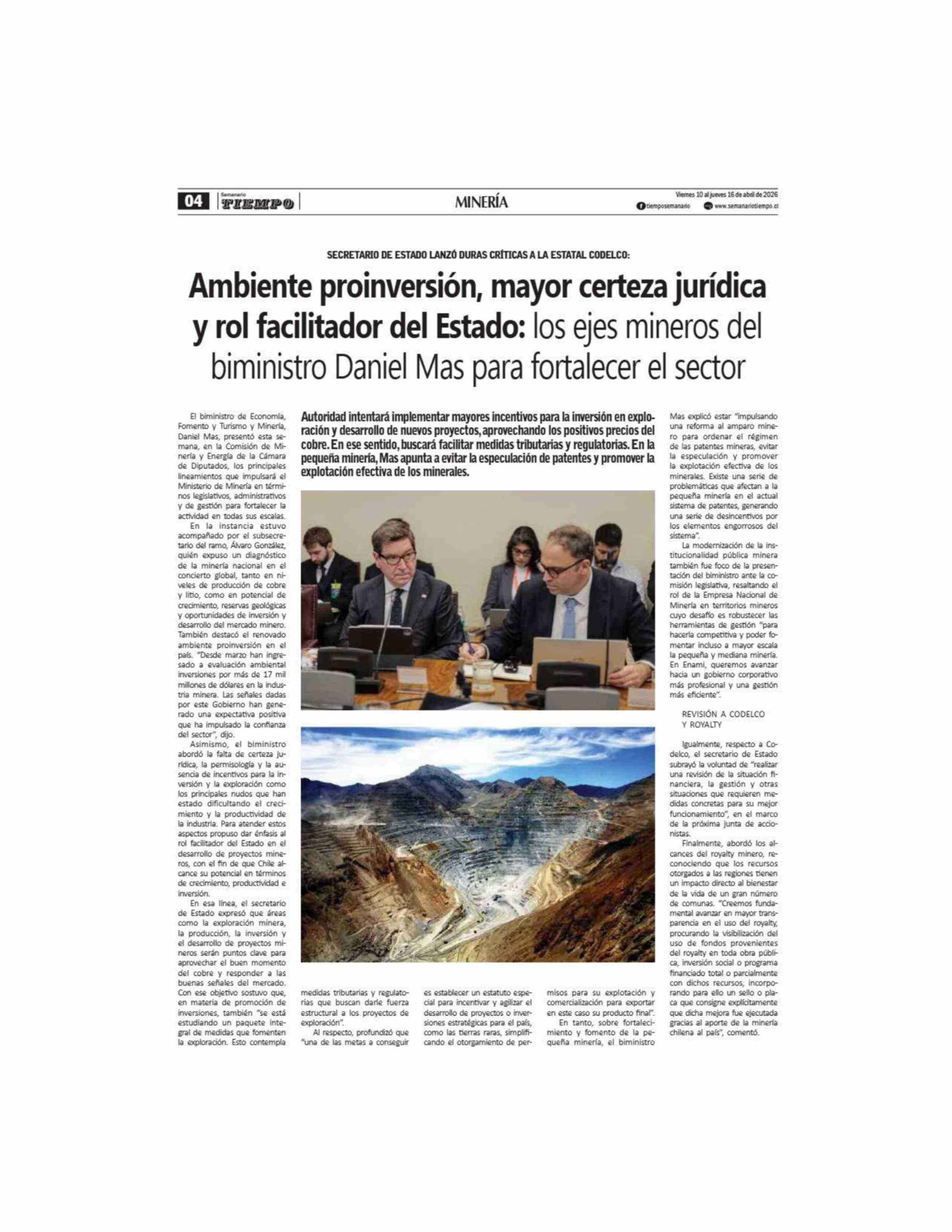 Título: Ambiente proinversión, mayor certeza jurídica y rol facilitador del Estado: los ejes mineros del biministro Daniel Mas para fortalecer el sector