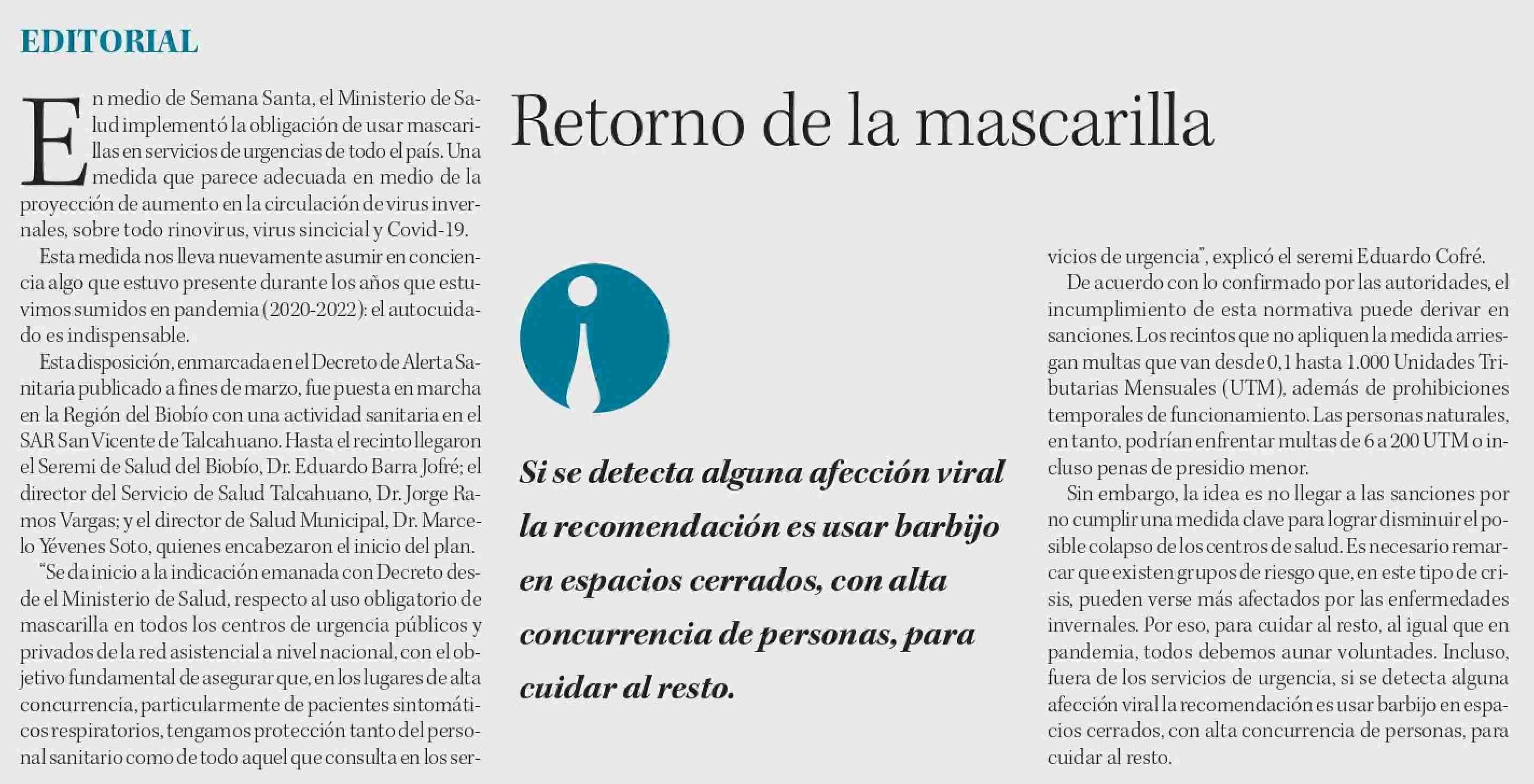 Editorial: Retorno de la mascarilla 17-04-2025 Diario Concepción |