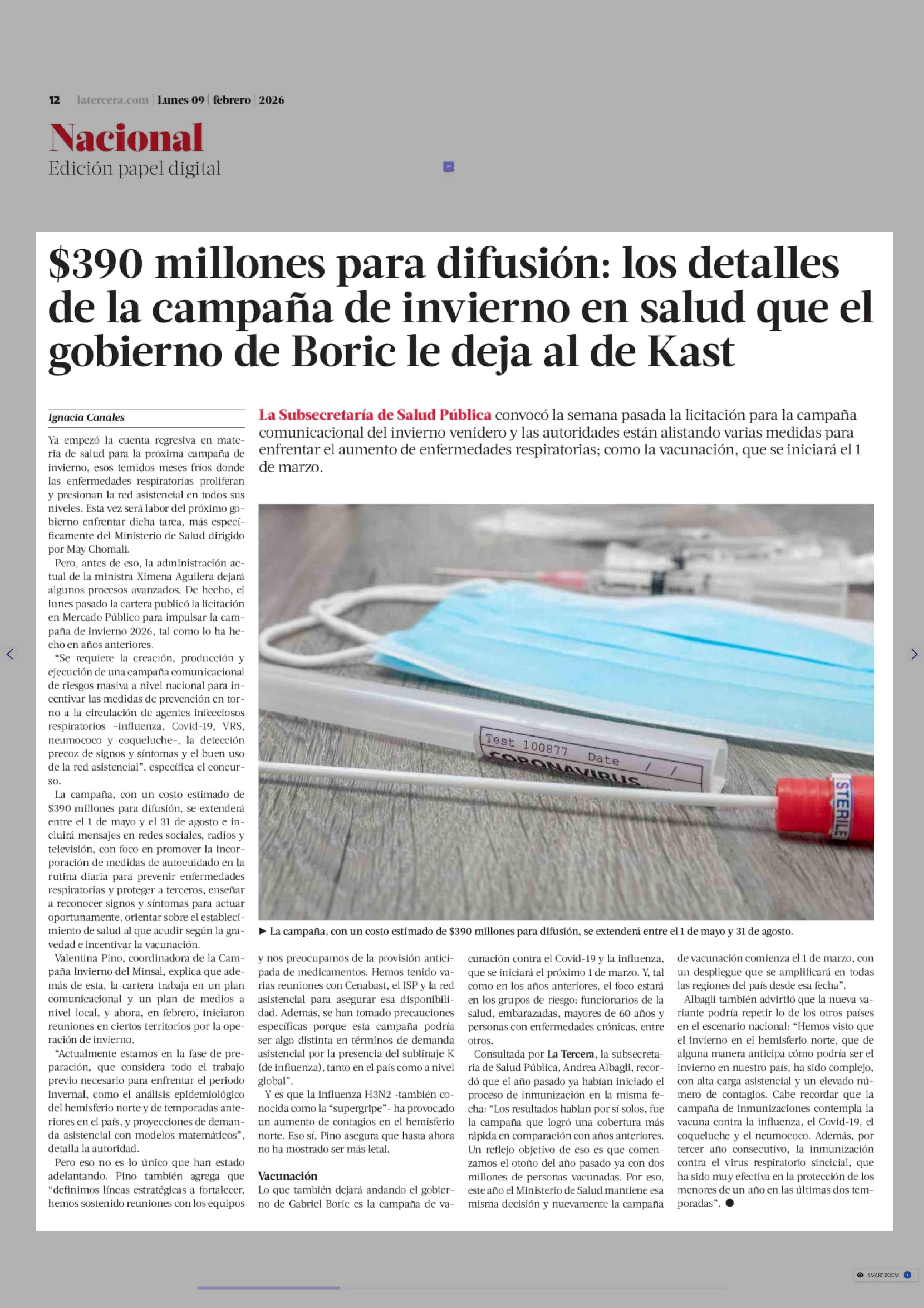 Título: $390 Millones para difusión: los detalles de la campaña de invierno en salud que el gobierno de Boric le deja al de Kast