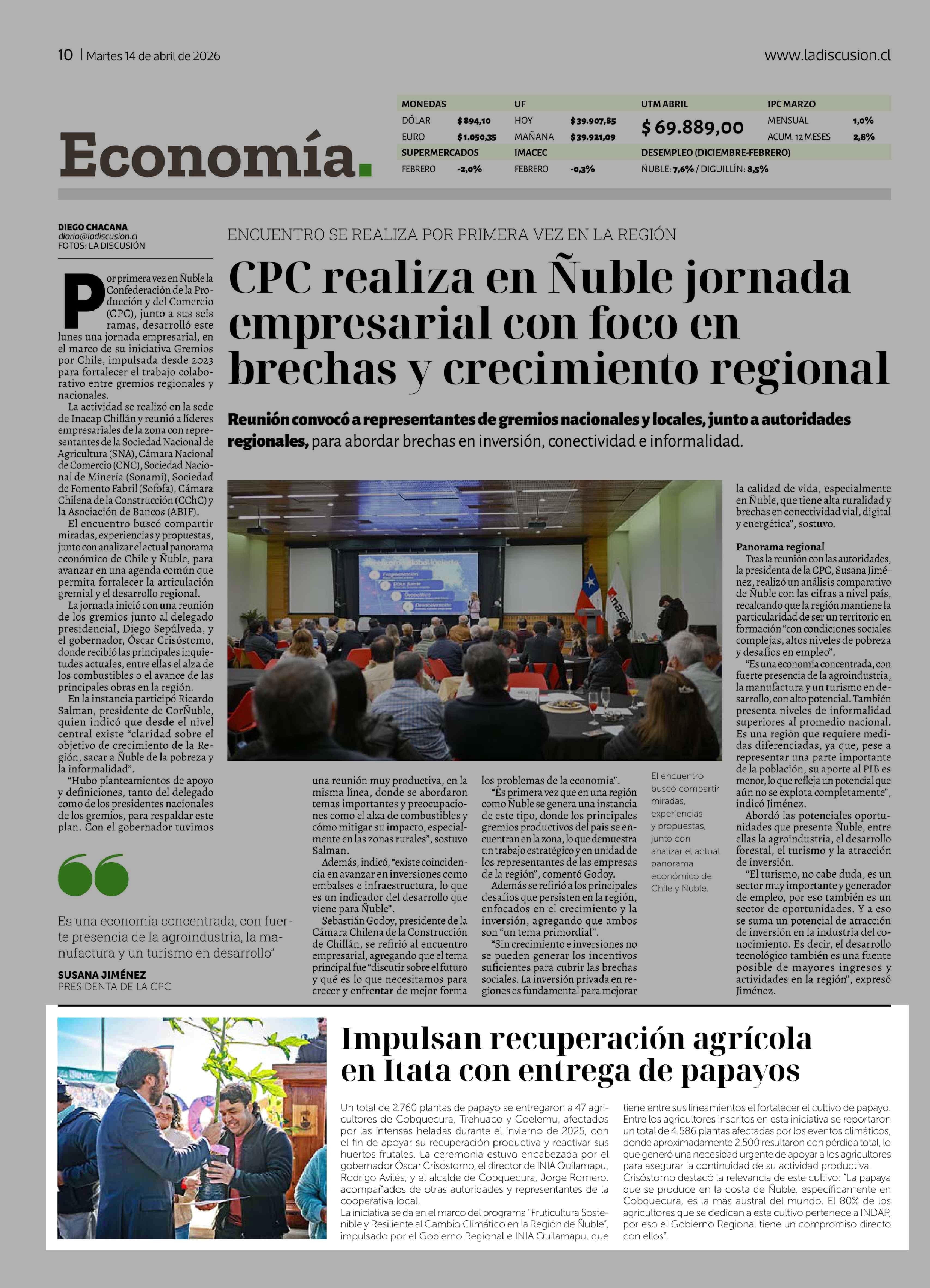 Fecha: 14-04-2026 Sector: Noticia general Región: Región del Ñuble