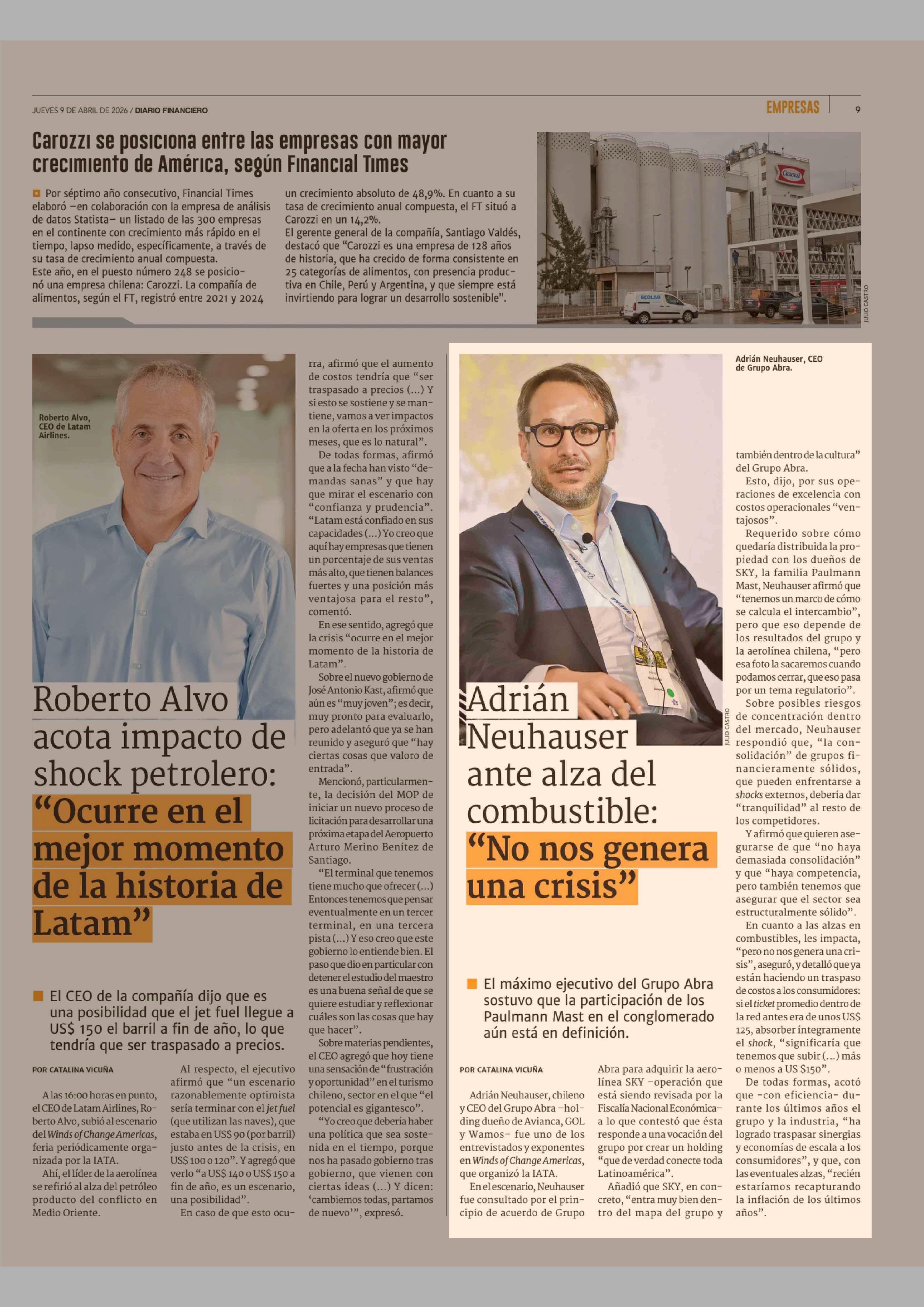 Adrián Neuhauser ante alza del combustible: "No nos genera una crisis" 09-04-2026 Diario Financiero |