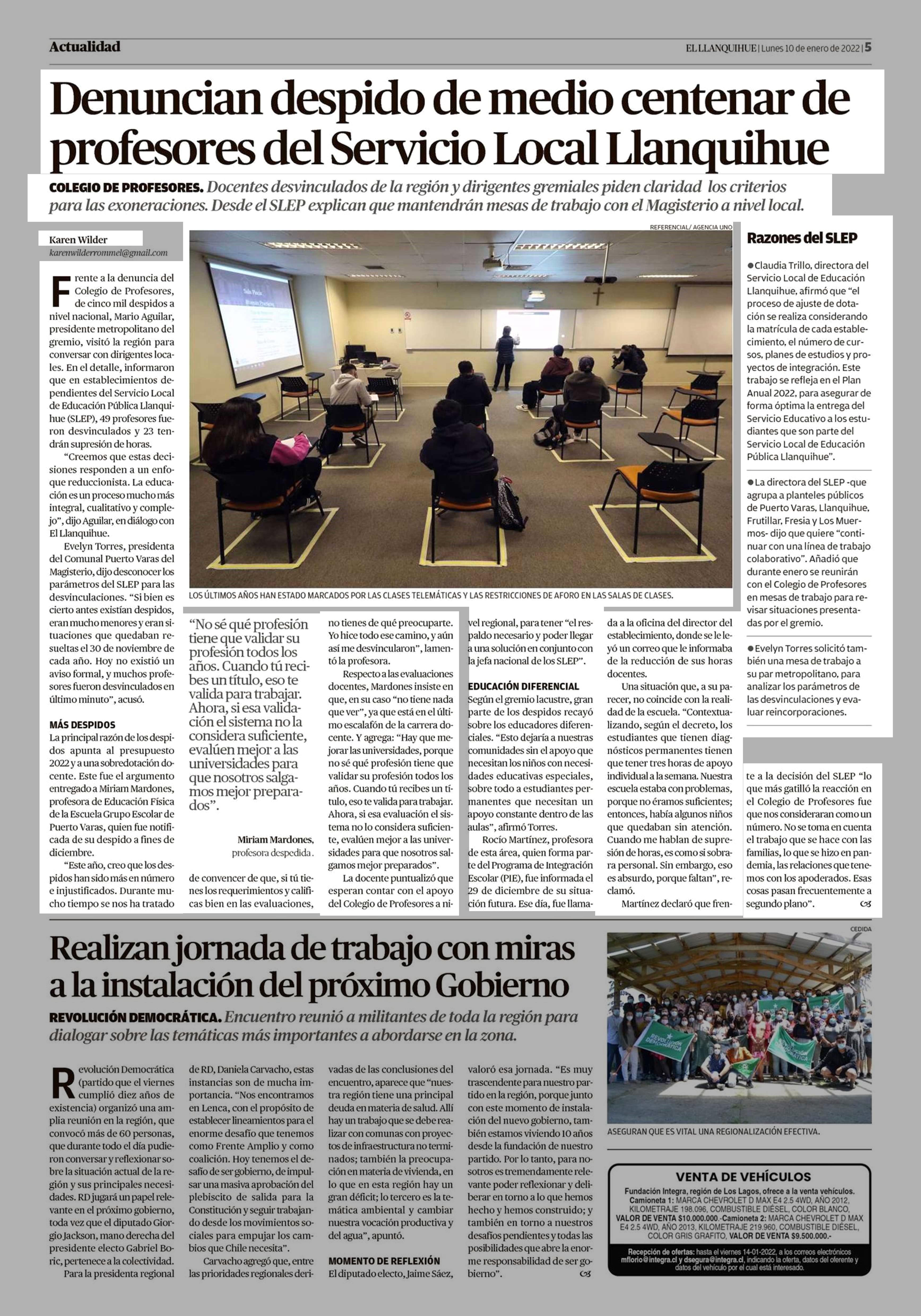 Denuncian despido de medio centenar de profesores del Servicio Local Llanquihue 10-01-2022 El Llanquihue |
