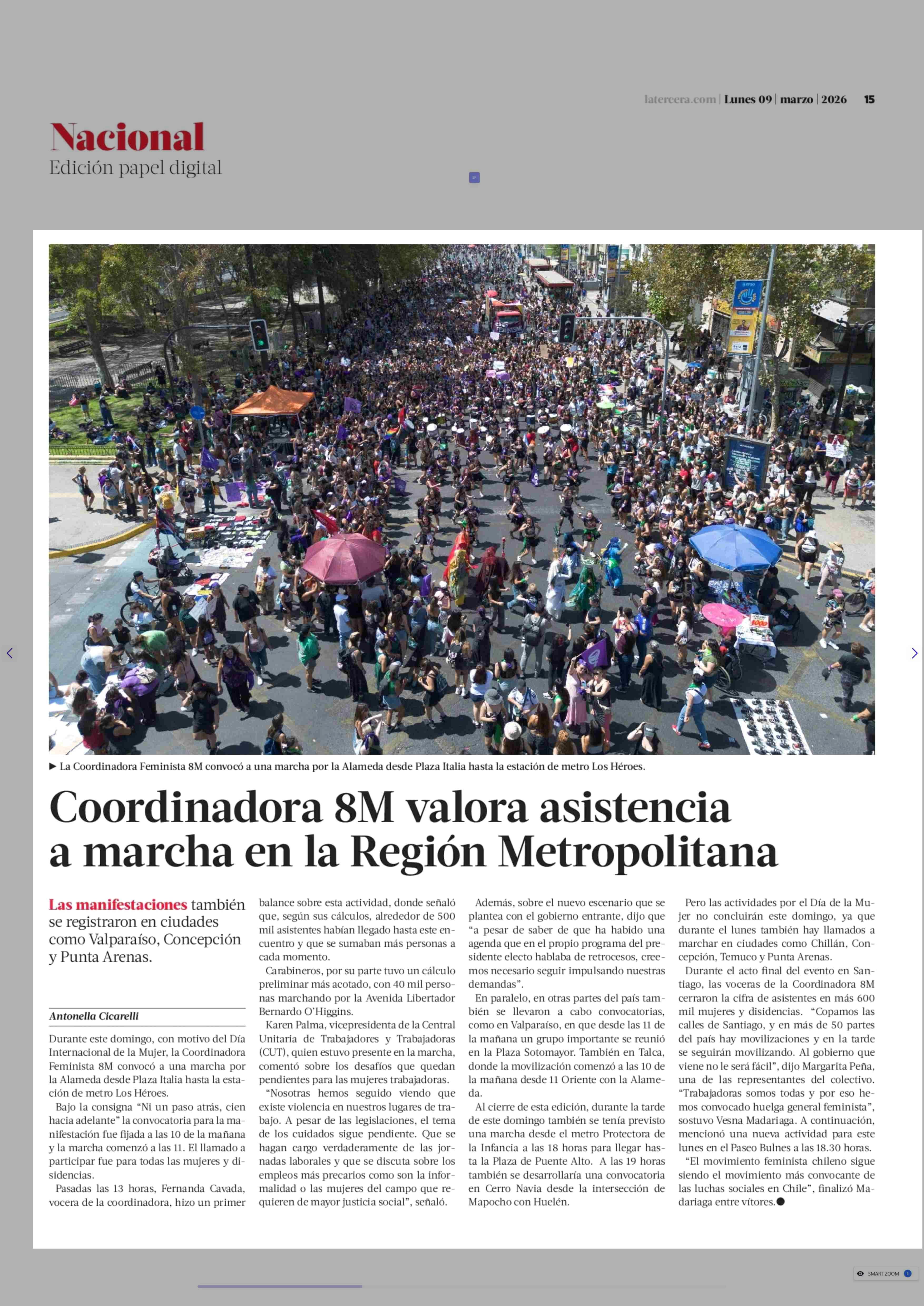 Título: Coordinadora 8M valora asistencia a marcha en la Región Metropolitana