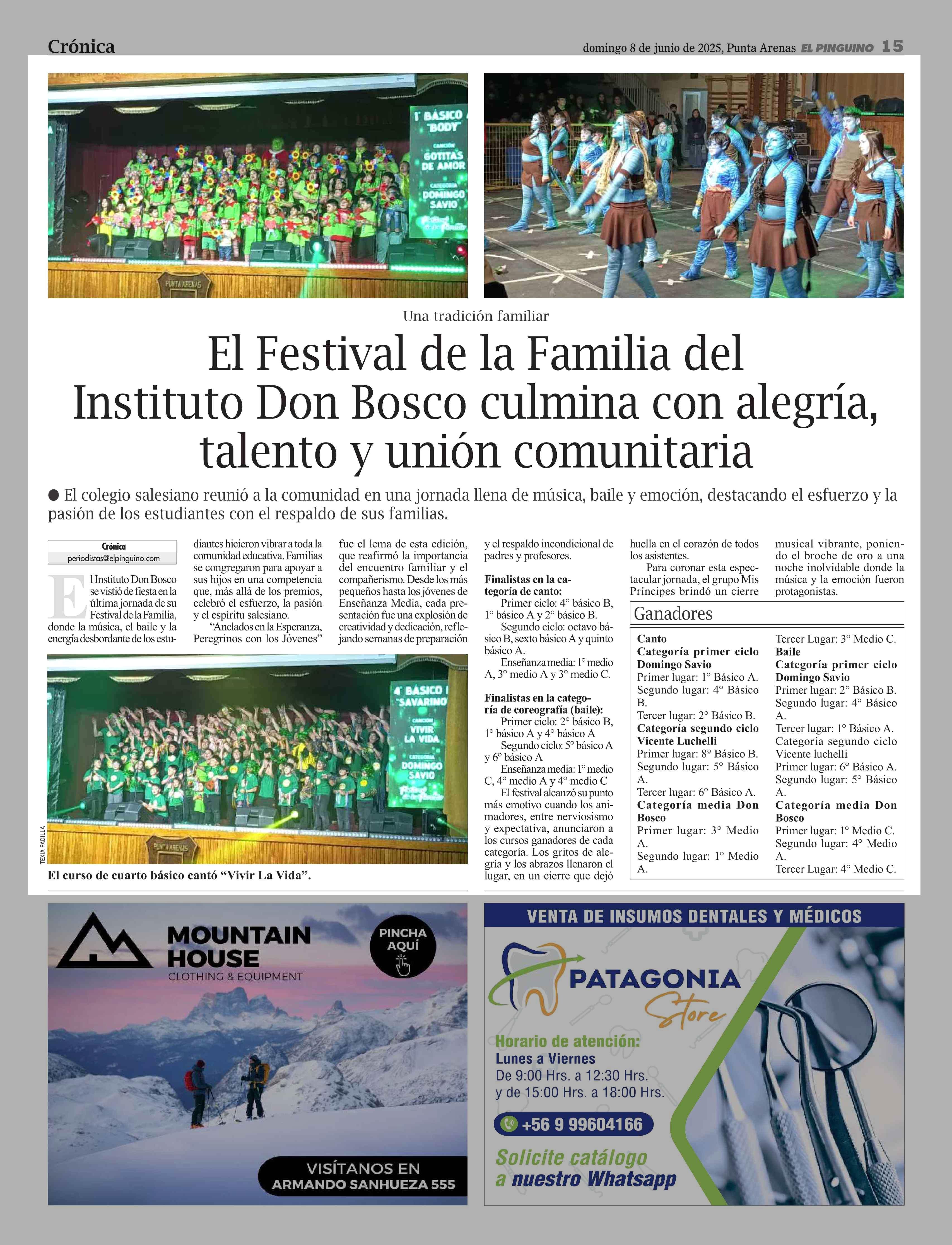 El Festival de la Familia del Instituto Don Bosco culmina con alegría, talento y unión comunitaria 08-06-2025 El Pingüino |