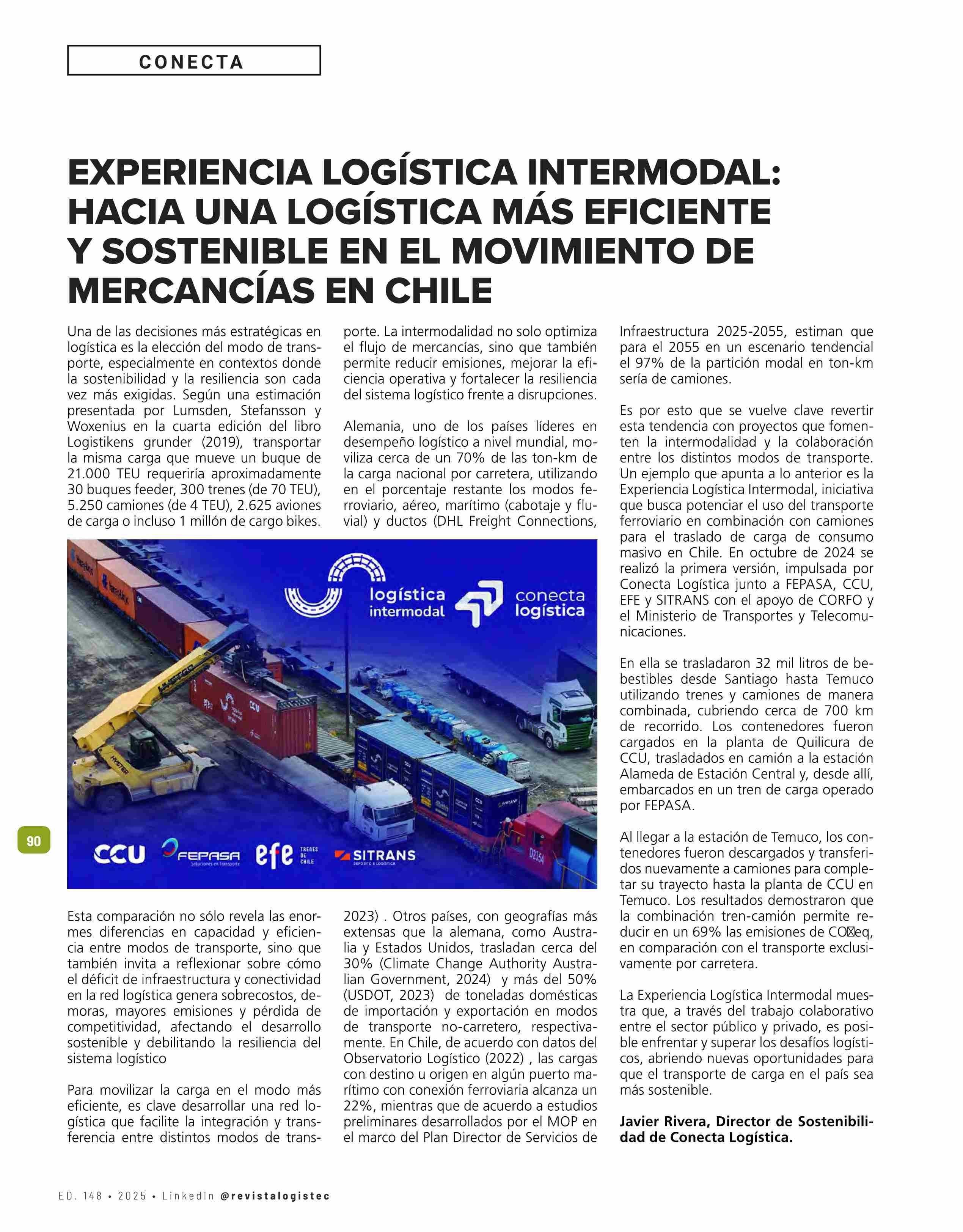 EXPERIENCIA LOGÍSTICA INTERMODAL: HACIA UNA LOGISTICA MAS EFICIENTE Y SOSTENIBLE EN EL MOVIMIENTO DE MERCANCIAS EN CHILE 17-06-2025 Revista Logistec |