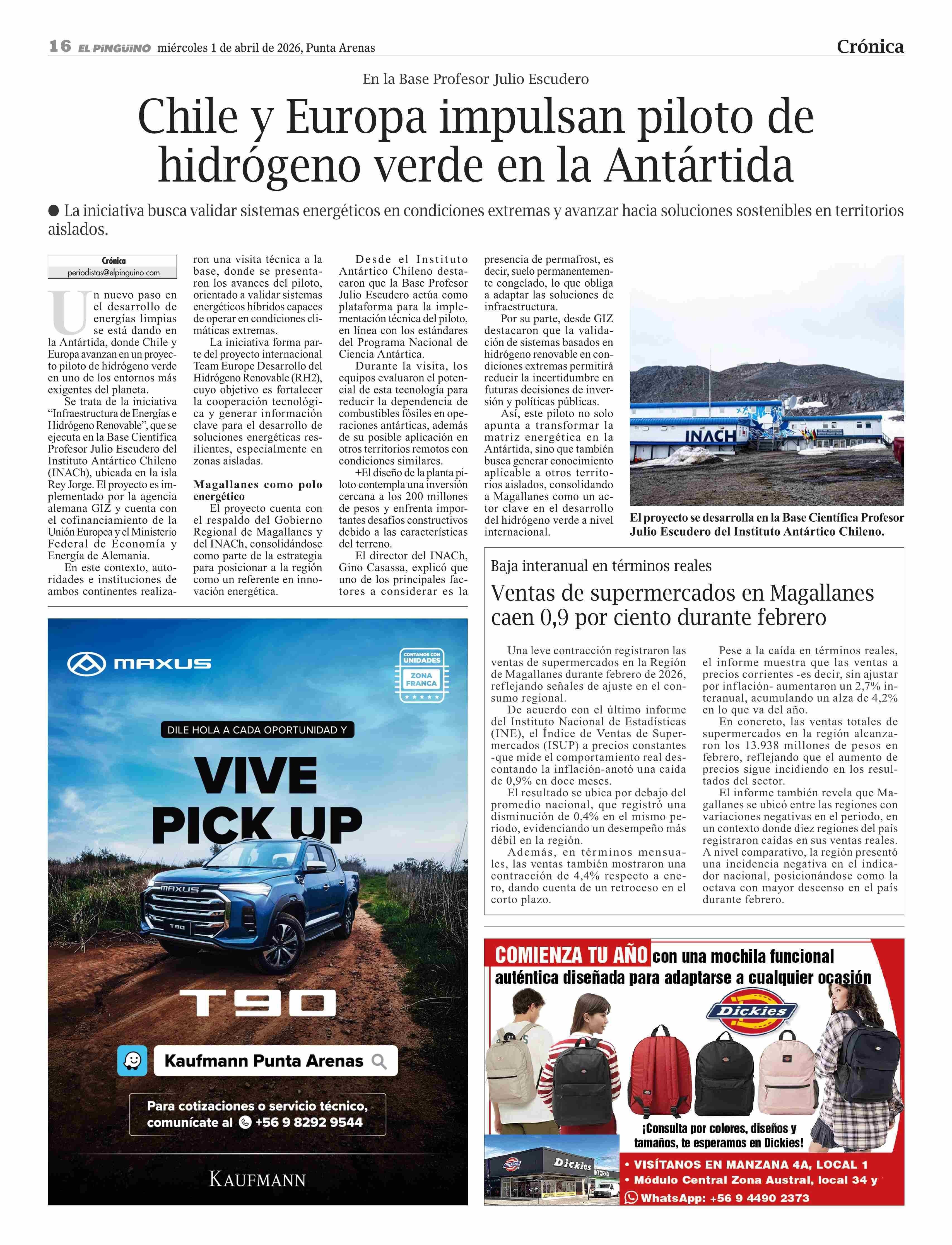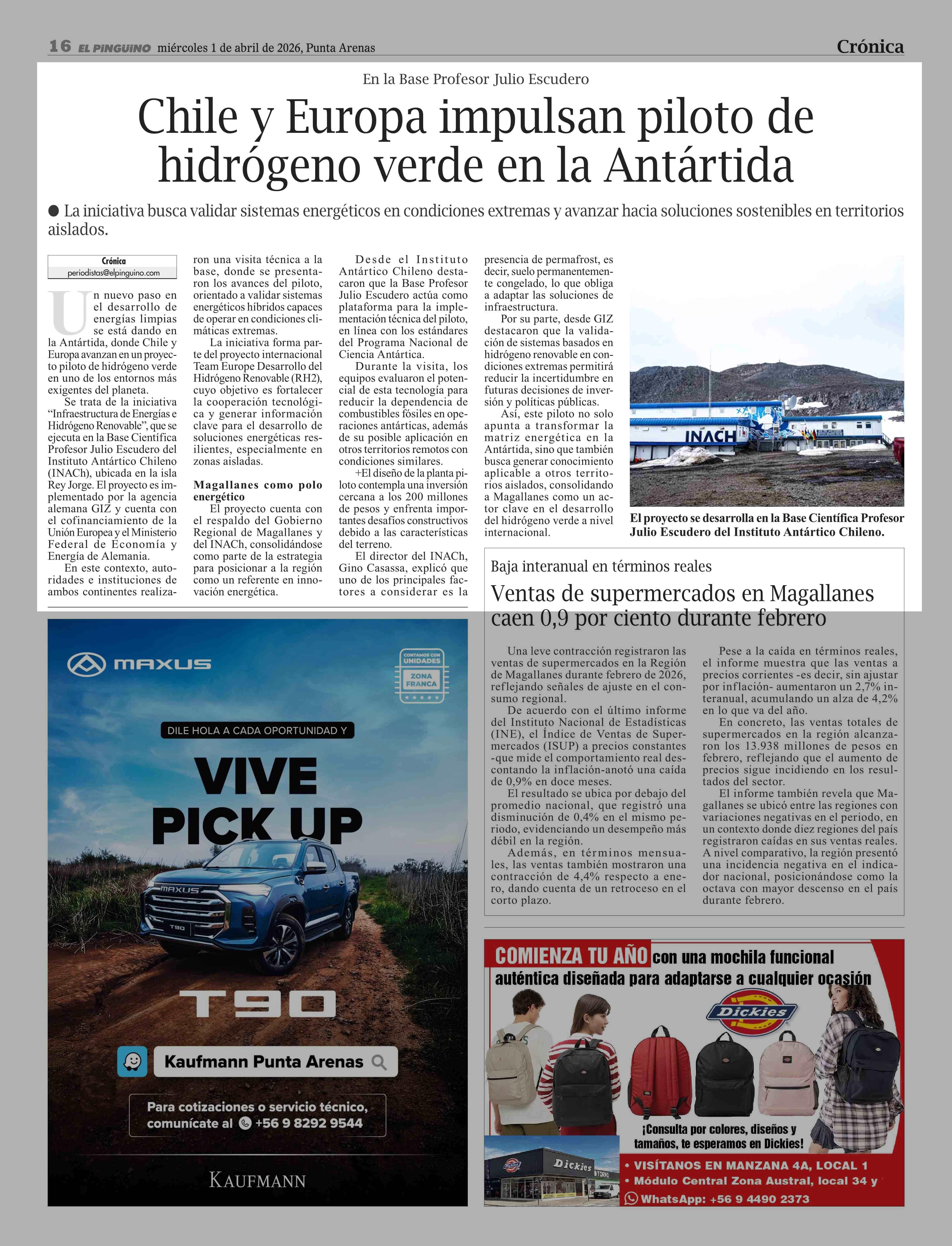 Fecha: 01-04-2026 Sector: Noticia general Región: Región de Magallanes y de la Antártica Chilena