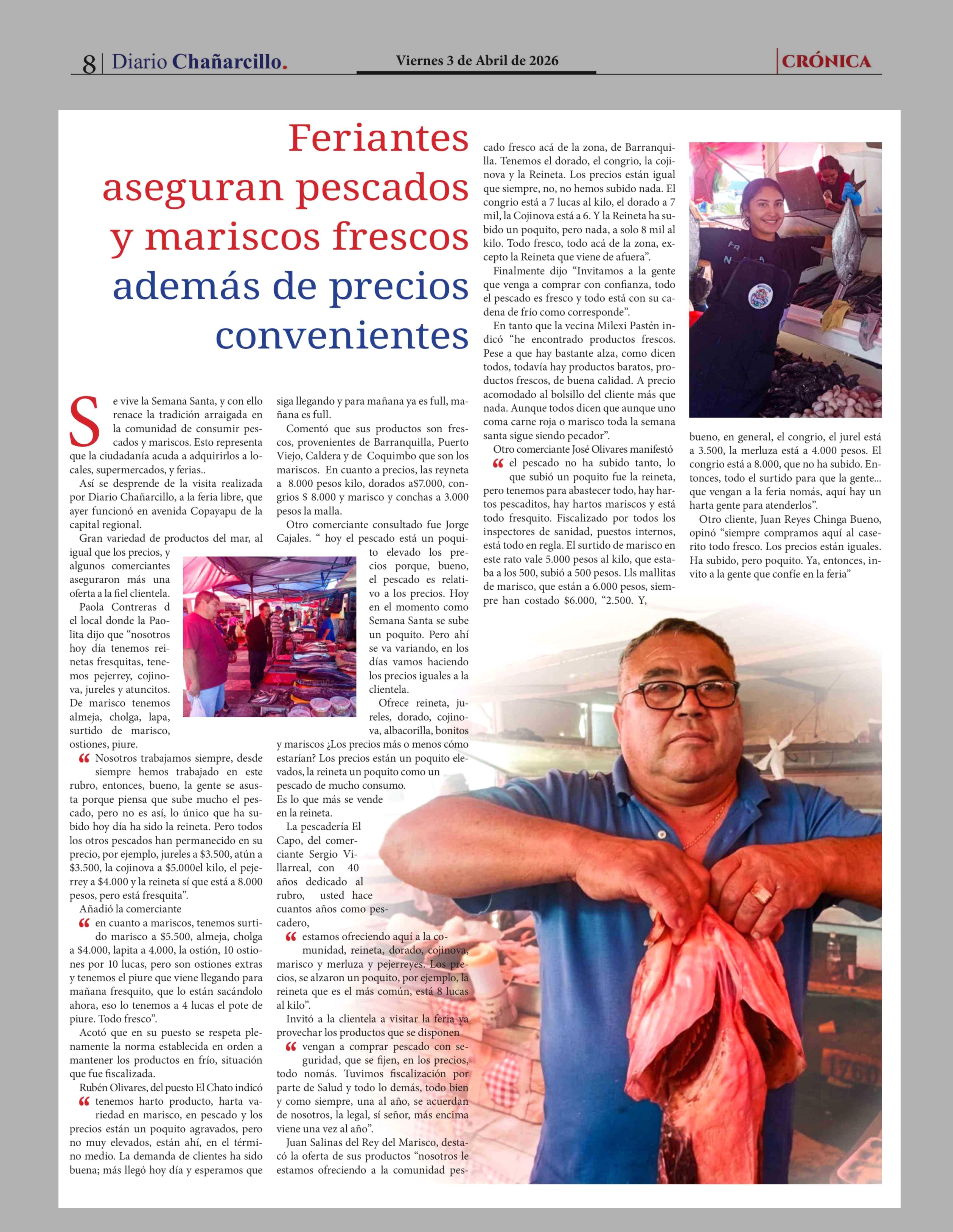 Feriantes aseguran pescados y mariscos frescos además de precios convenientes 03-04-2026 Diario Chañarcillo |
