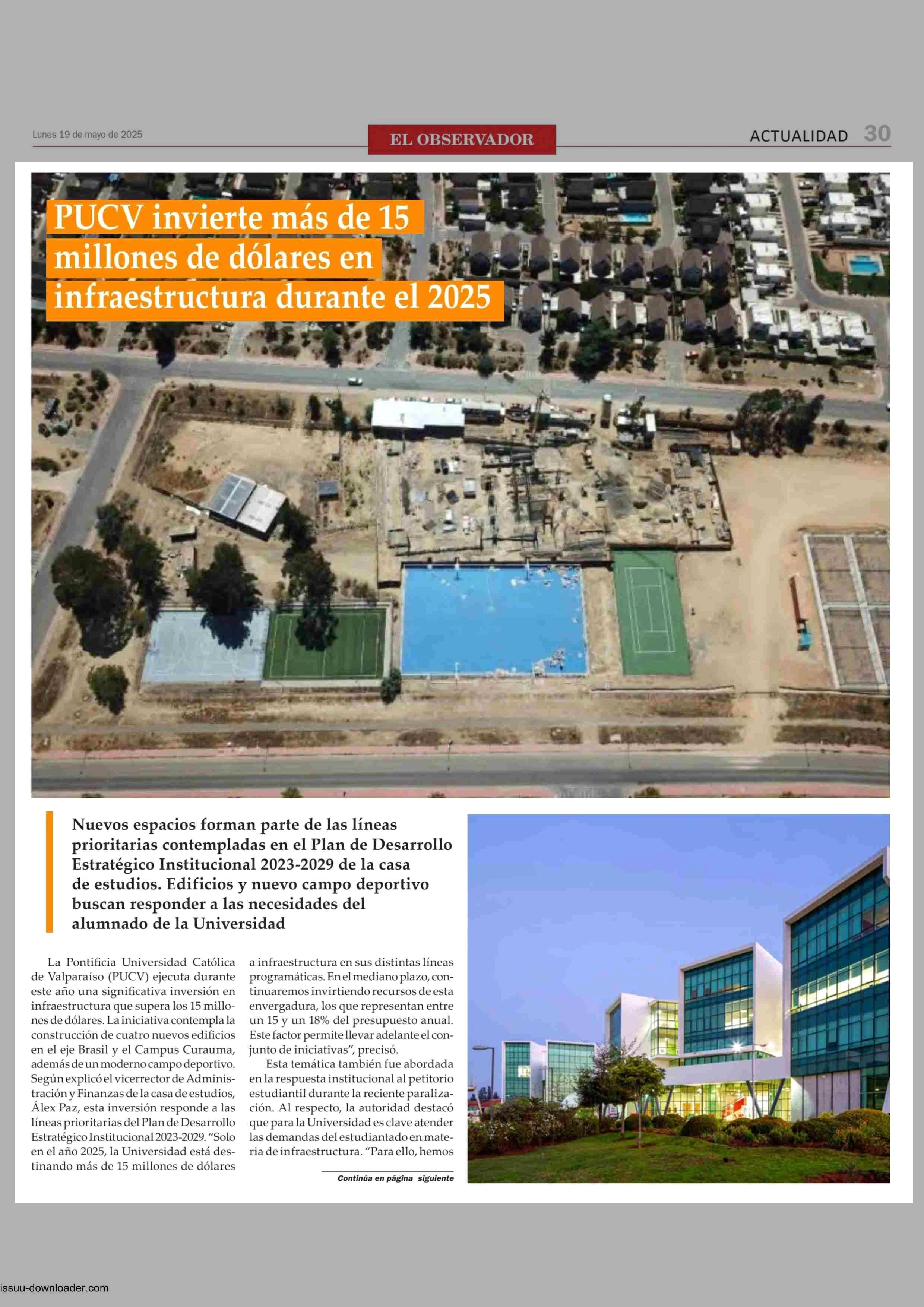 Título: PUCV invierte más de 15 millones de dólares en infraeestructura durante el 2025