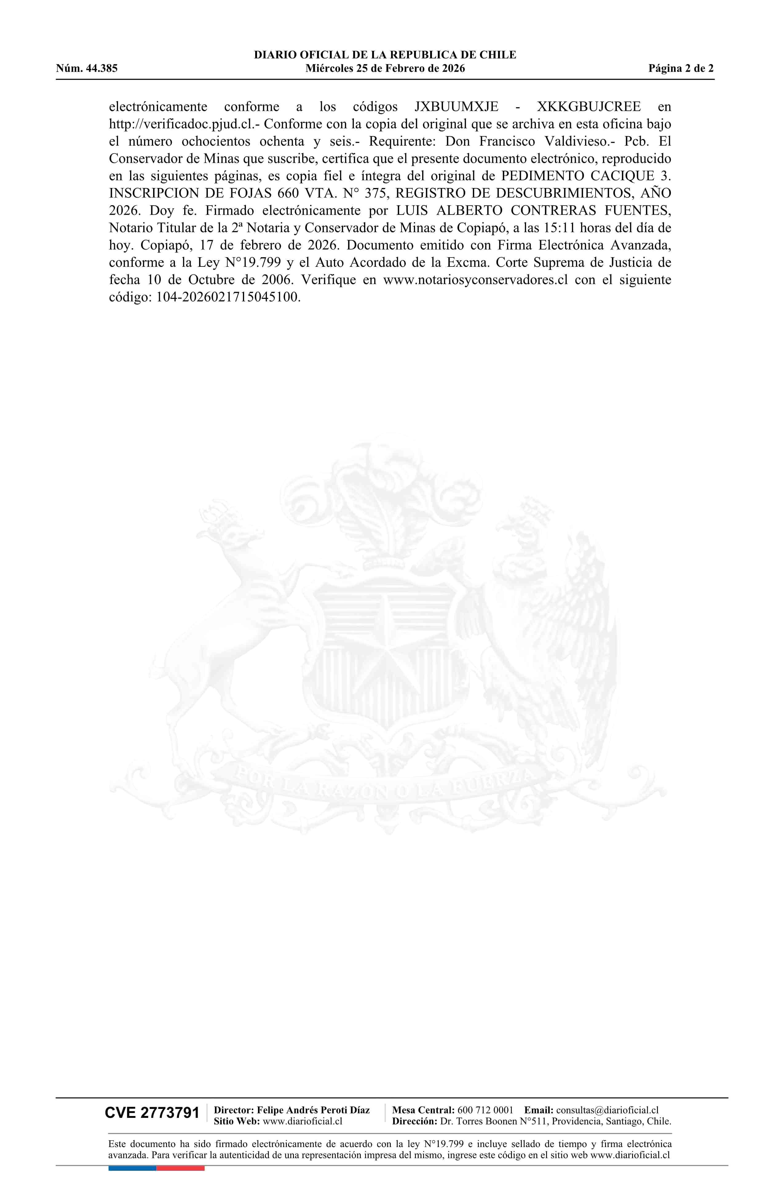 CACIQUE 3 / Compañía Minera Atahualpa SpA 25-02-2026 DIARIO OFICIAL CHILE - BOLETÍN OFICIAL DE MINERÍA |