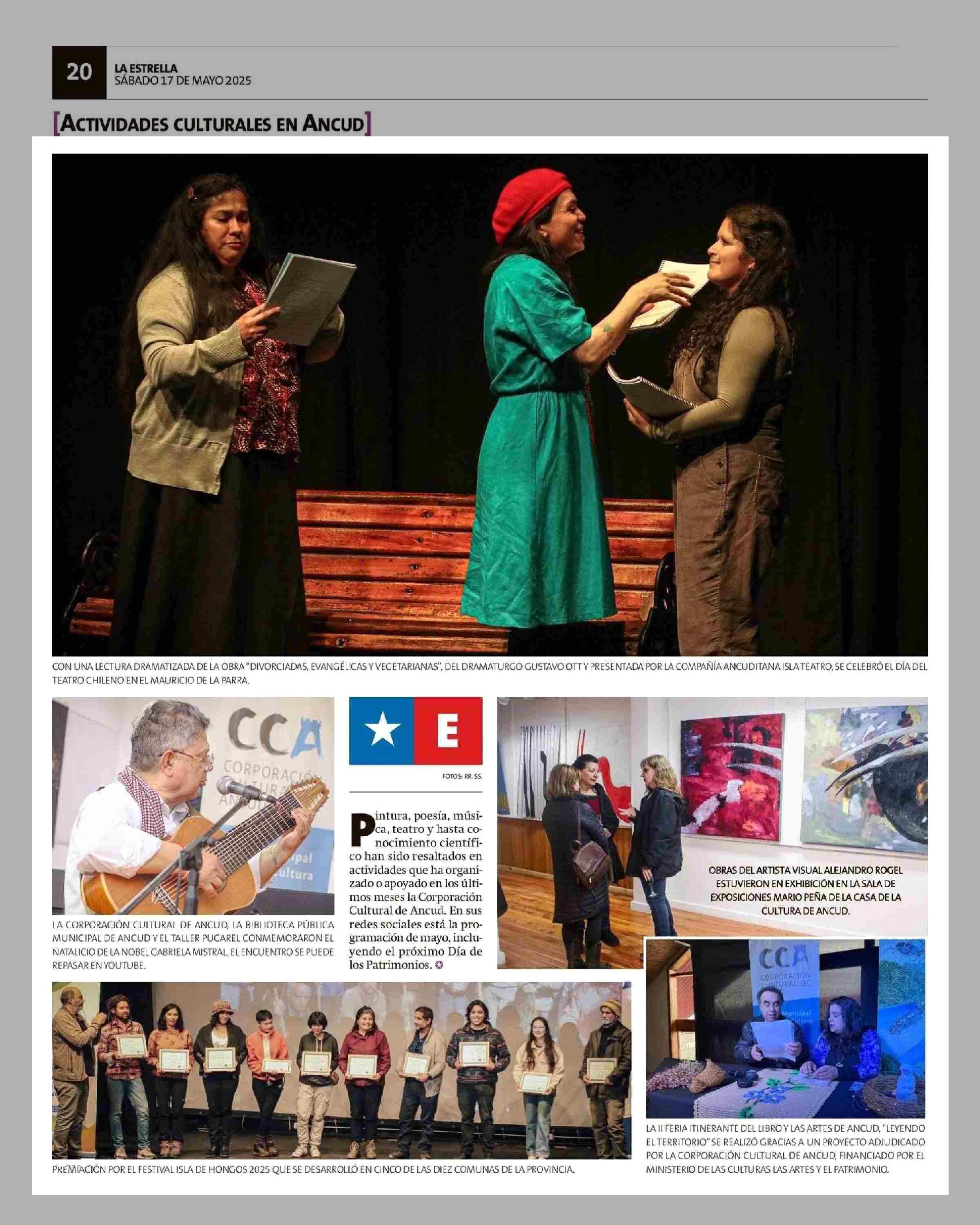 | Título: | nocimiento científico han sido resaltados en actividades que ha organizado o apoyado en los últiy A mos meses la Corporación Cultural de Ancud. En sus LA CORPORACIÓN CULTURAL DE ANCUD, LA BIBLIOTECA PÚBLICA — redes sociales está la proMUNICIPAL DE ANCUD Y EL TALLER PUCAREL CONMEMORARON EL gramación |