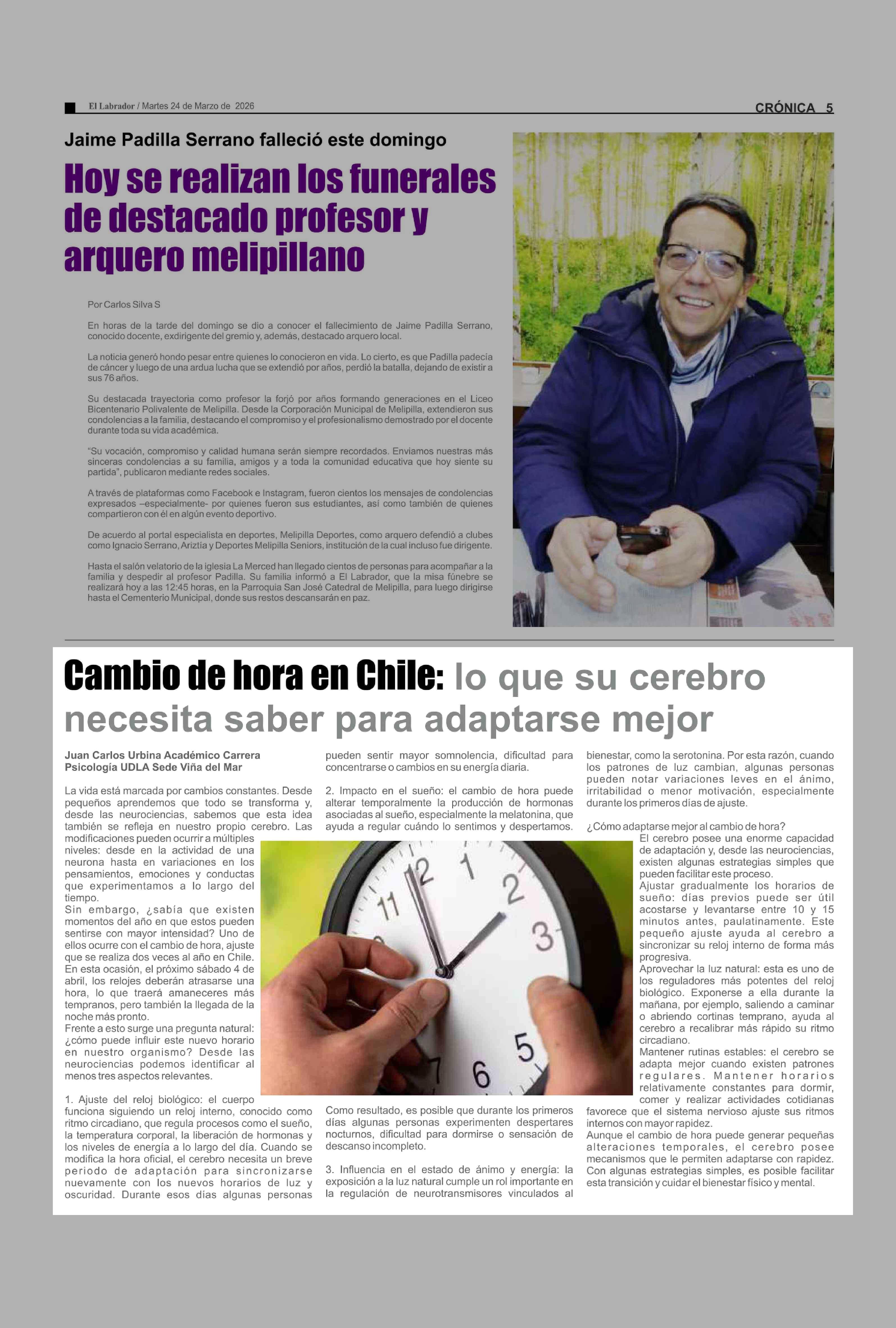 Cambio de hora en Chile: lo que su cerebro necesita saber para adaptarse mejor 24-03-2026 El Labrador |