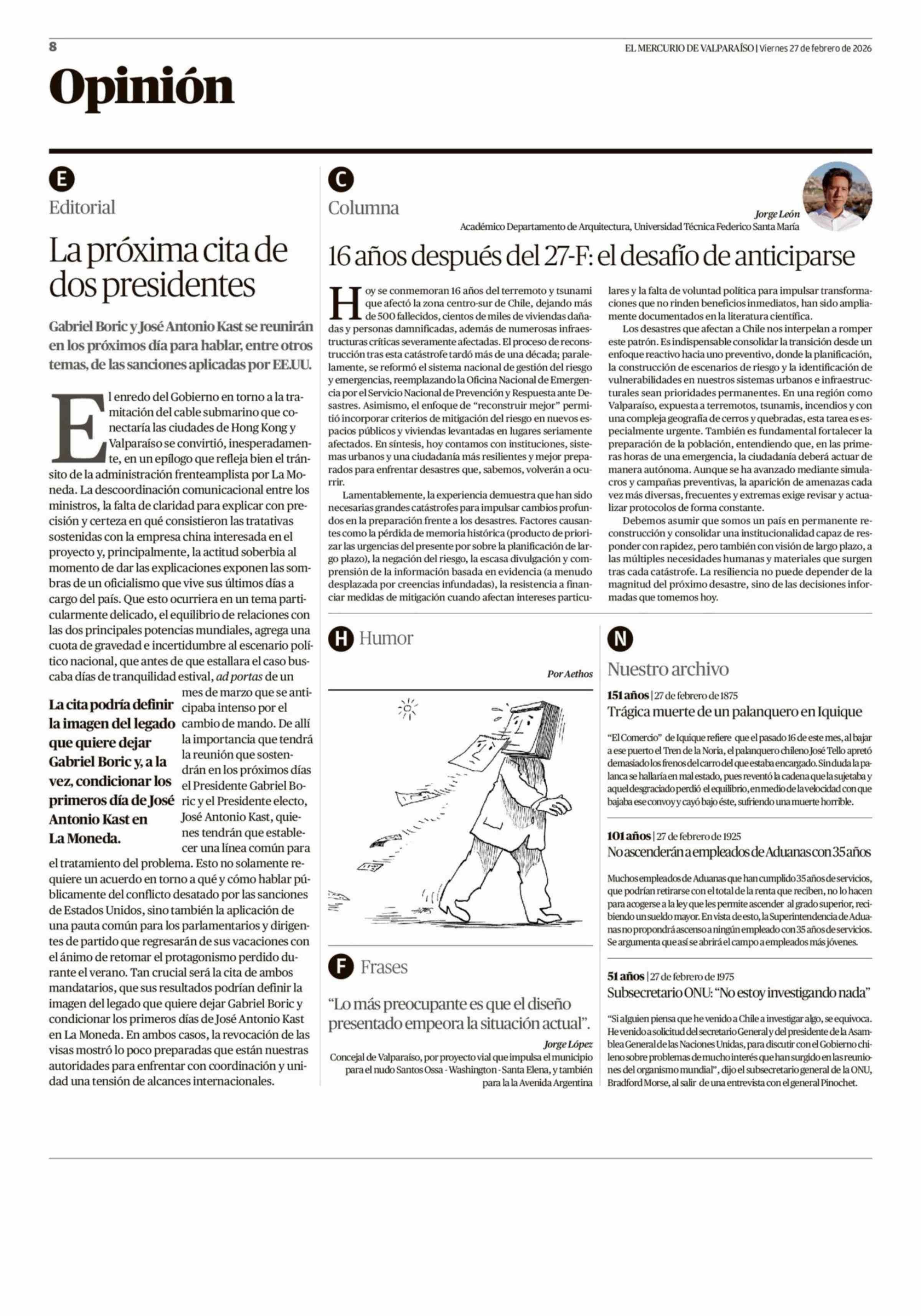 | Fecha: | 27-02-2026 | Sector: | Columnas de Opinión | Región: | Región de Valparaíso |