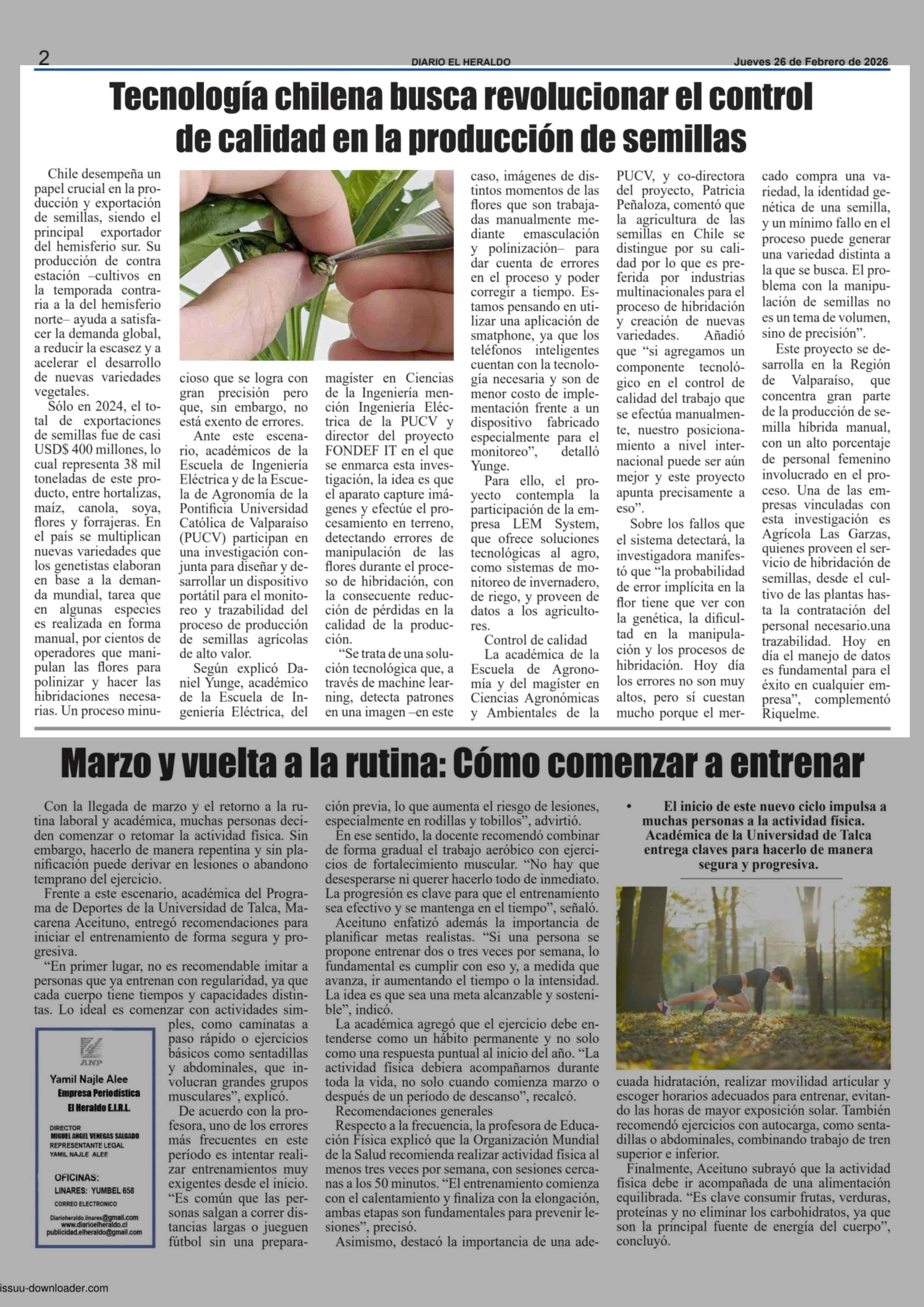 Tecnología chilena busca revolucionar el control de calidad en la producción de semillas 26-02-2026 El Heraldo |